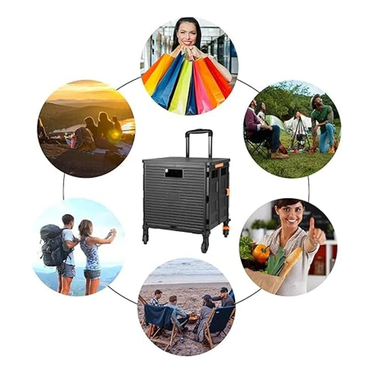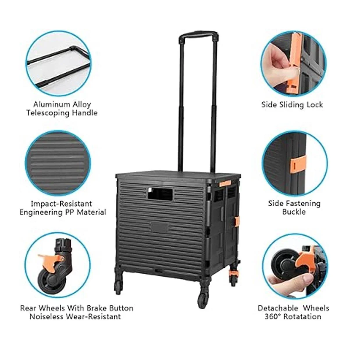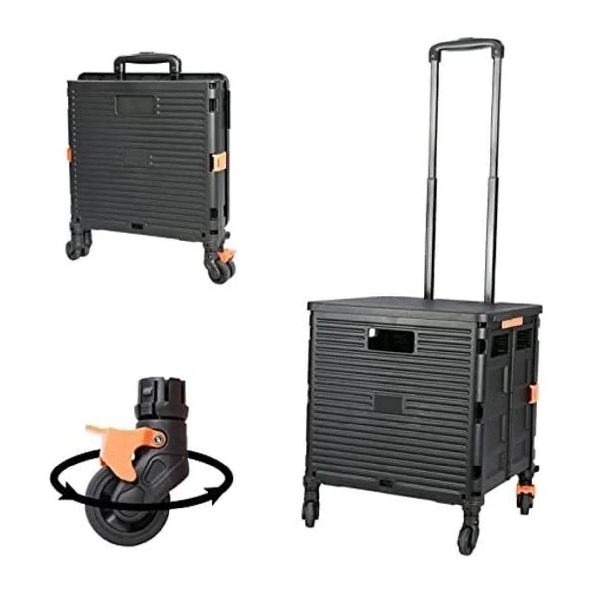 Carrito plegable portátil plegable con mango telescópico de plástico duradero y resistente, 4 ruedas giratorias para viajes, compras, mudanza, equipaje, oficina negro negro