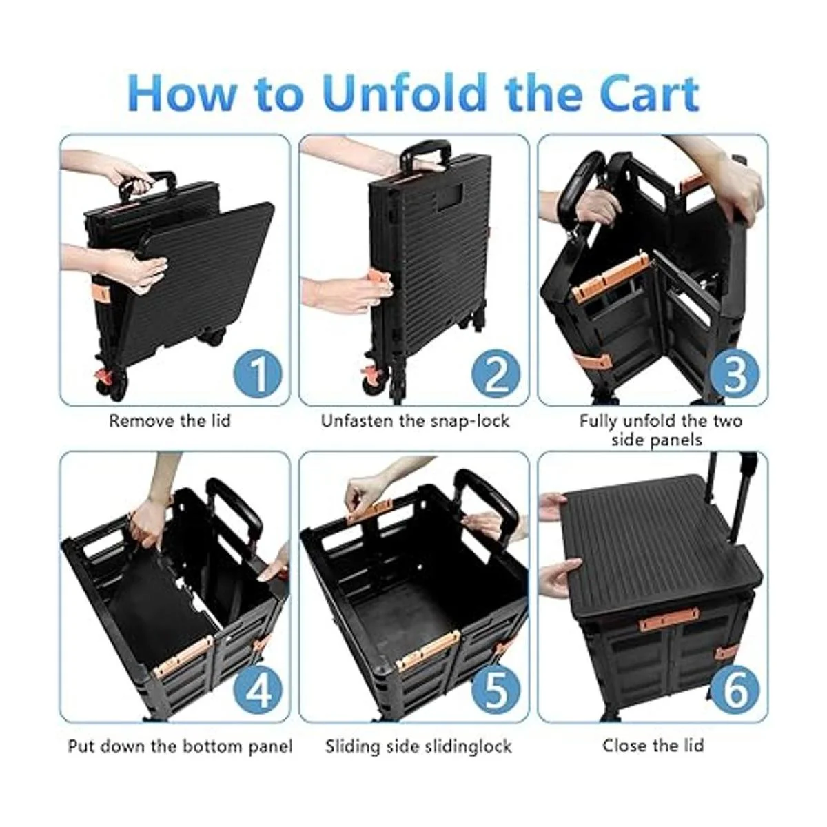 Fácil de usar: este carrito de mano de moda se puede montar fácilmente simplemente desplegándolo, el botón deslizante lateral puede mantenerlo fijo como una caja, con tapa, puedes cargar más artículos en la caja, o utilizar como asiento o taburete de escalón, o puedes quitar la tapa, colgarlo en la parte delantera para cargar artículos largos, muy versátil. Nota: si tienes alguna pregunta, no dudes en ponerte en contacto con nosotros.
