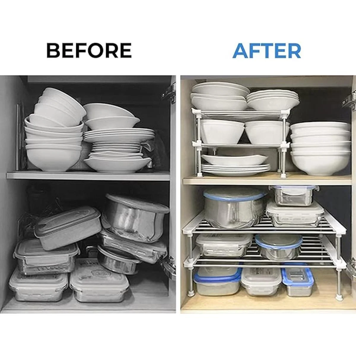 Maximiza el espacio perfecto para organizar platos, tazas, botellas y desorden de cocina y crear espacio de almacenamiento en tu encimera de cocina y armarios, baño y mucho más.