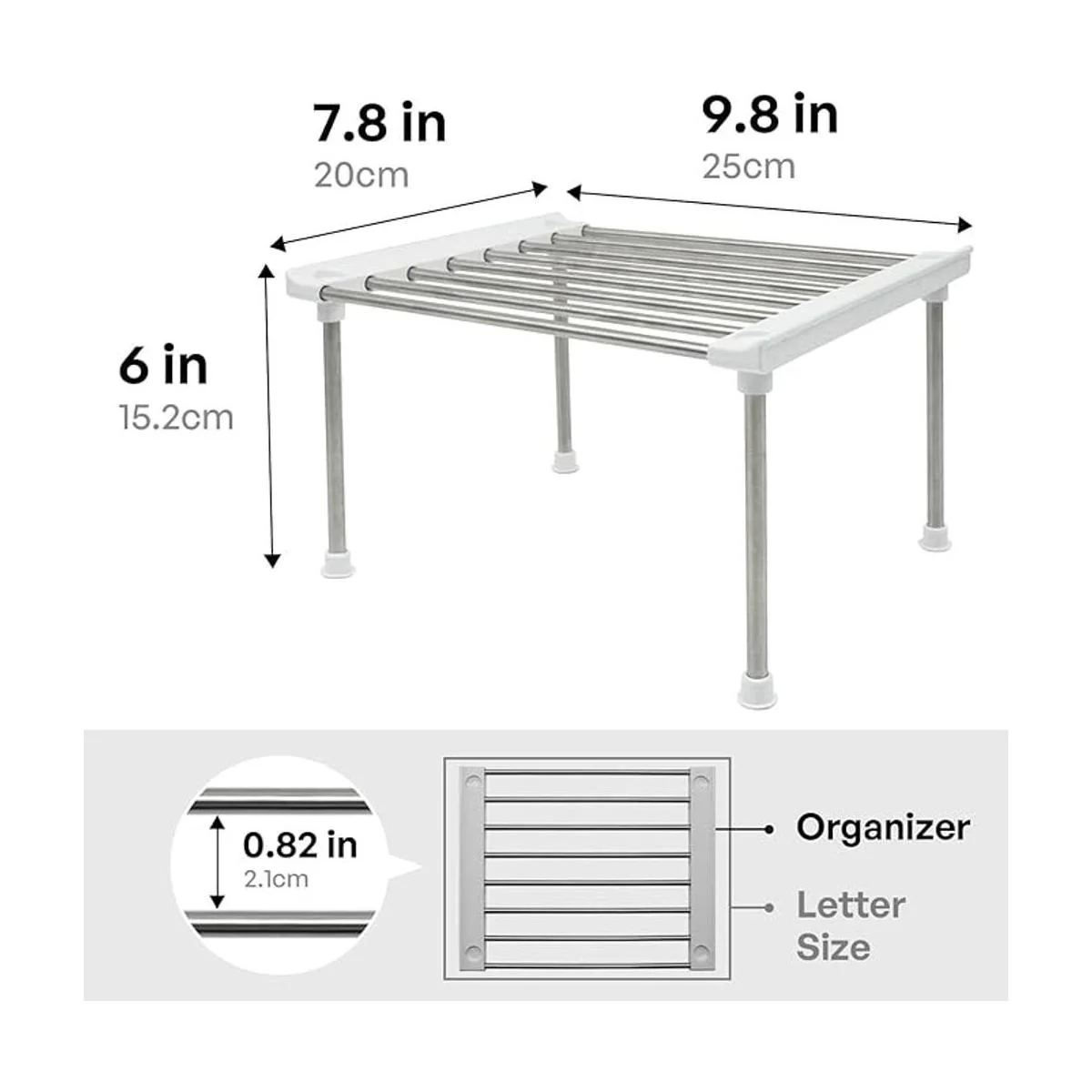 Estantes multiusos no solo se limitan al uso de encimera de cocina y armarios, estos estantes se pueden utilizar para crear espacio en tocadores de baño, así como para elevar artículos como plantas y sostener libros de cocina. Los estantes también son ideales para usar debajo del fregadero para organizar productos de limpieza, Tupperware y mucho más. Los usos son infinitos
