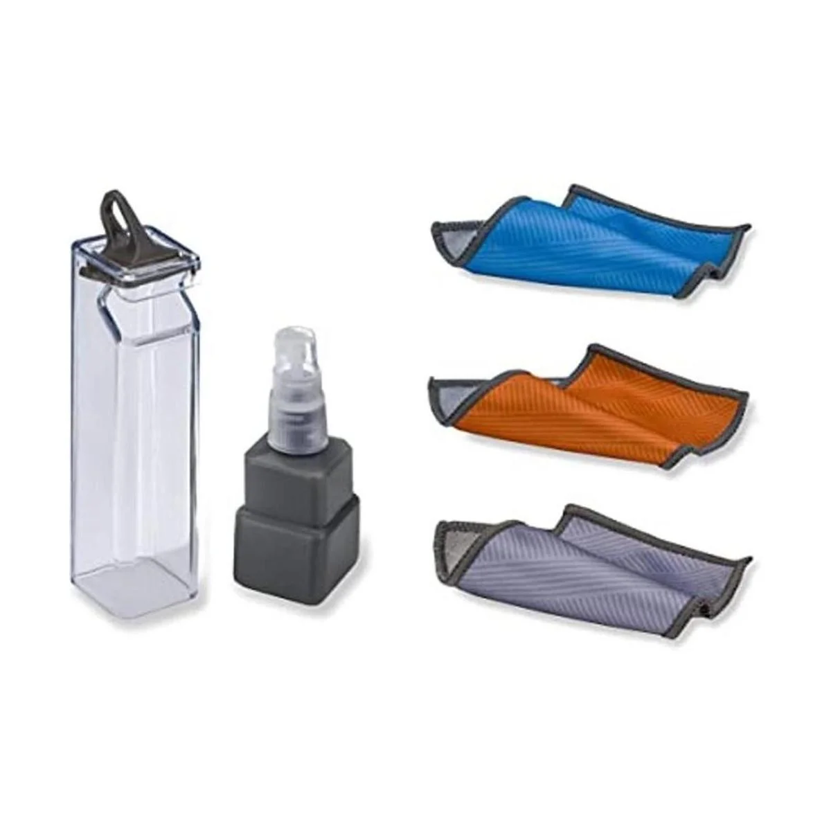 Componentes incluidos: spray de limpieza, paño de microfibra, funda