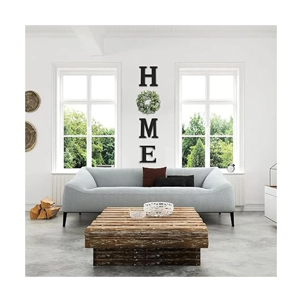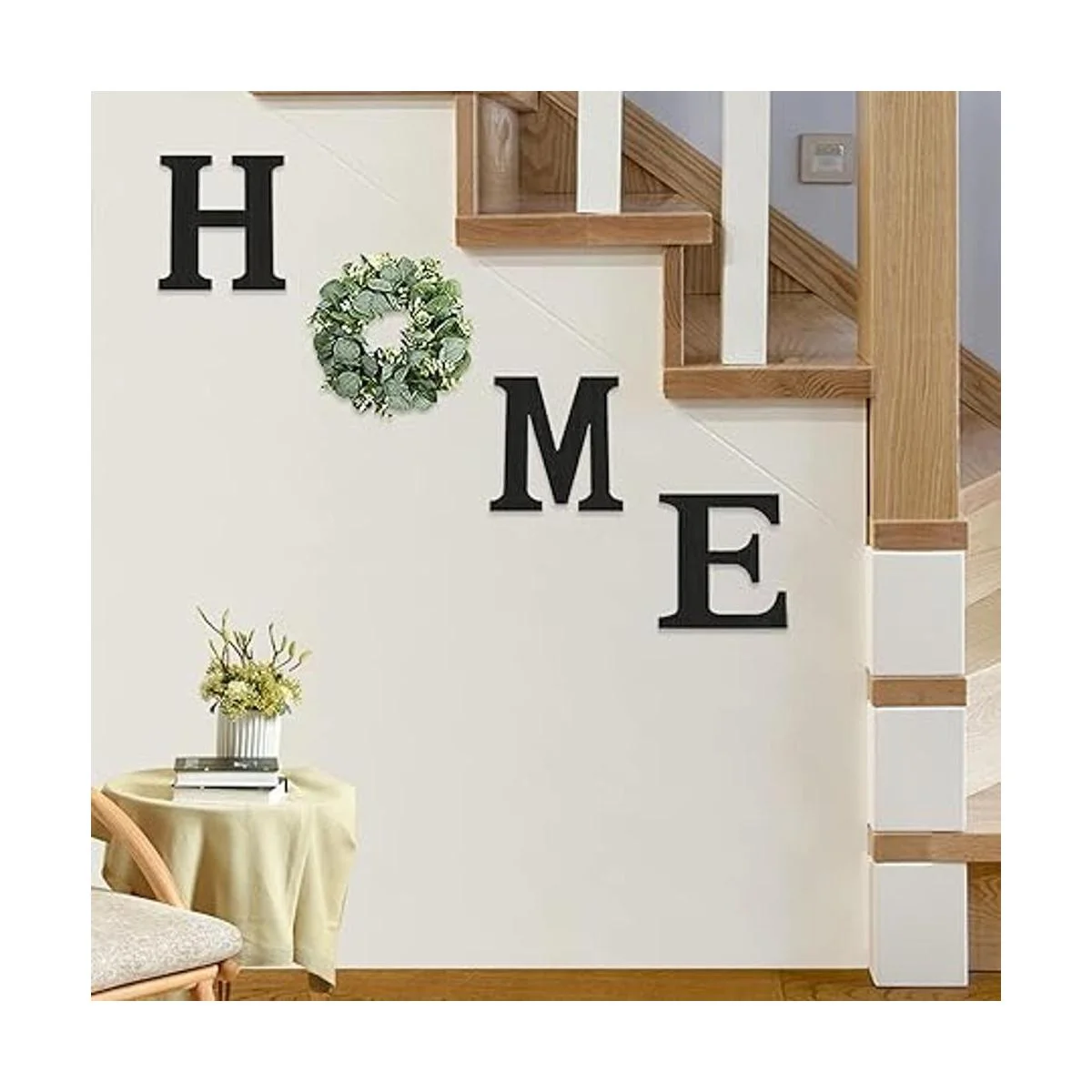 Hogar: El cartel decorativo de pared viene con letras de madera de paulownia de alta calidad H, M, E, y corona de eucalipto artificial para la letra O, formando en inglés la palabra HOME Hogar. El diseño especial hace que los carteles del hogar sean muy bonitos y atractivos.