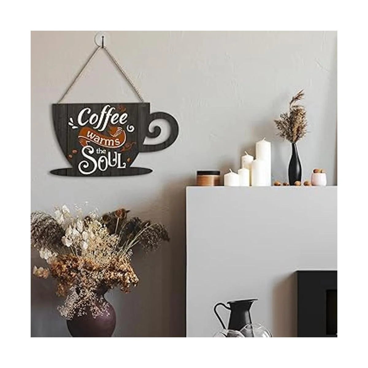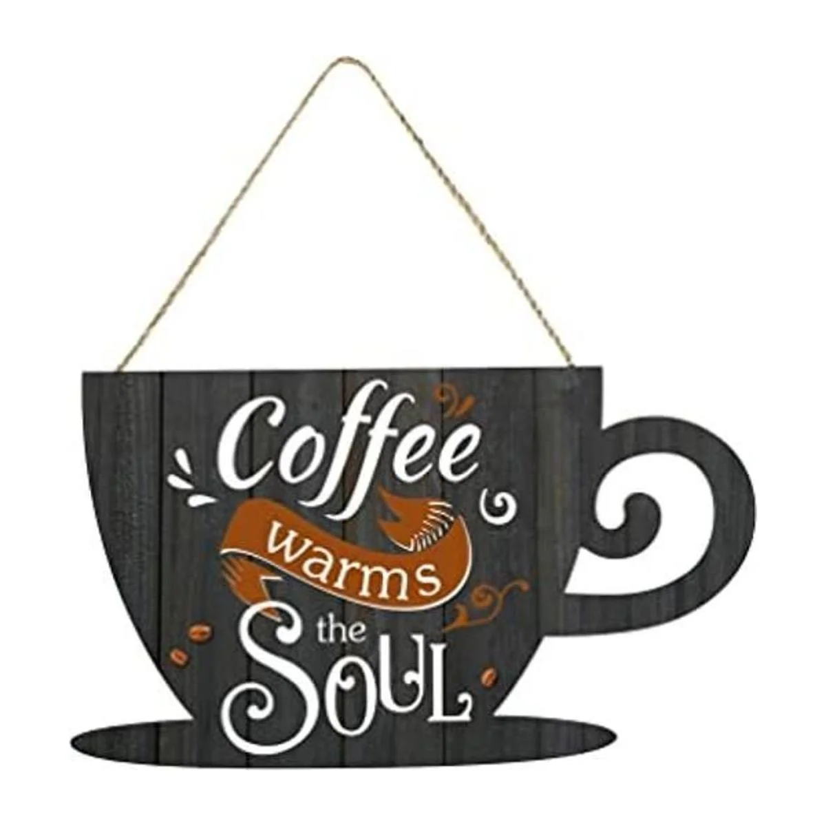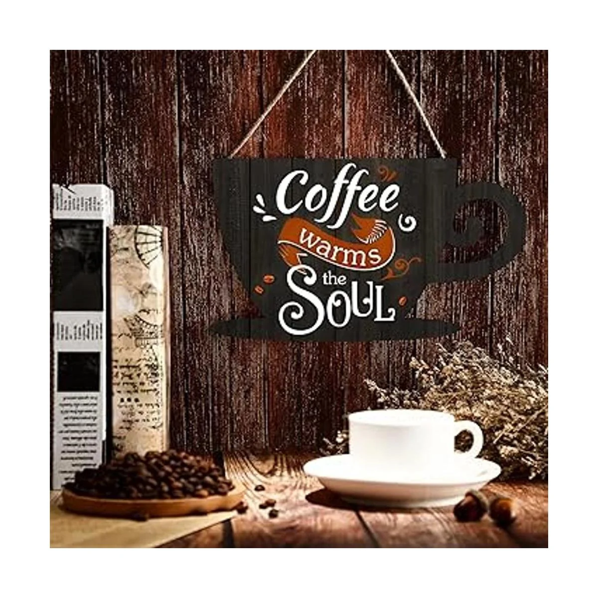 Aspecto interesante: la decoración de madera de esta barra de café está hecha de una bonita forma de taza de café con Coffee warms the sou. Cuando leas esta frase, te sentirás relajado y traerá algo de diversión a tu hora del café