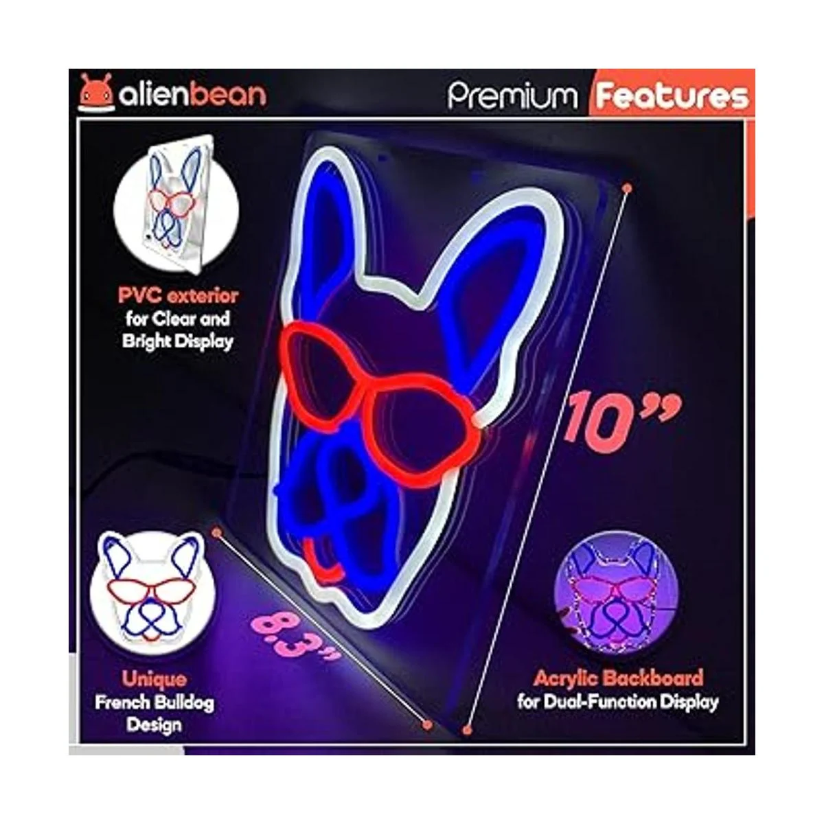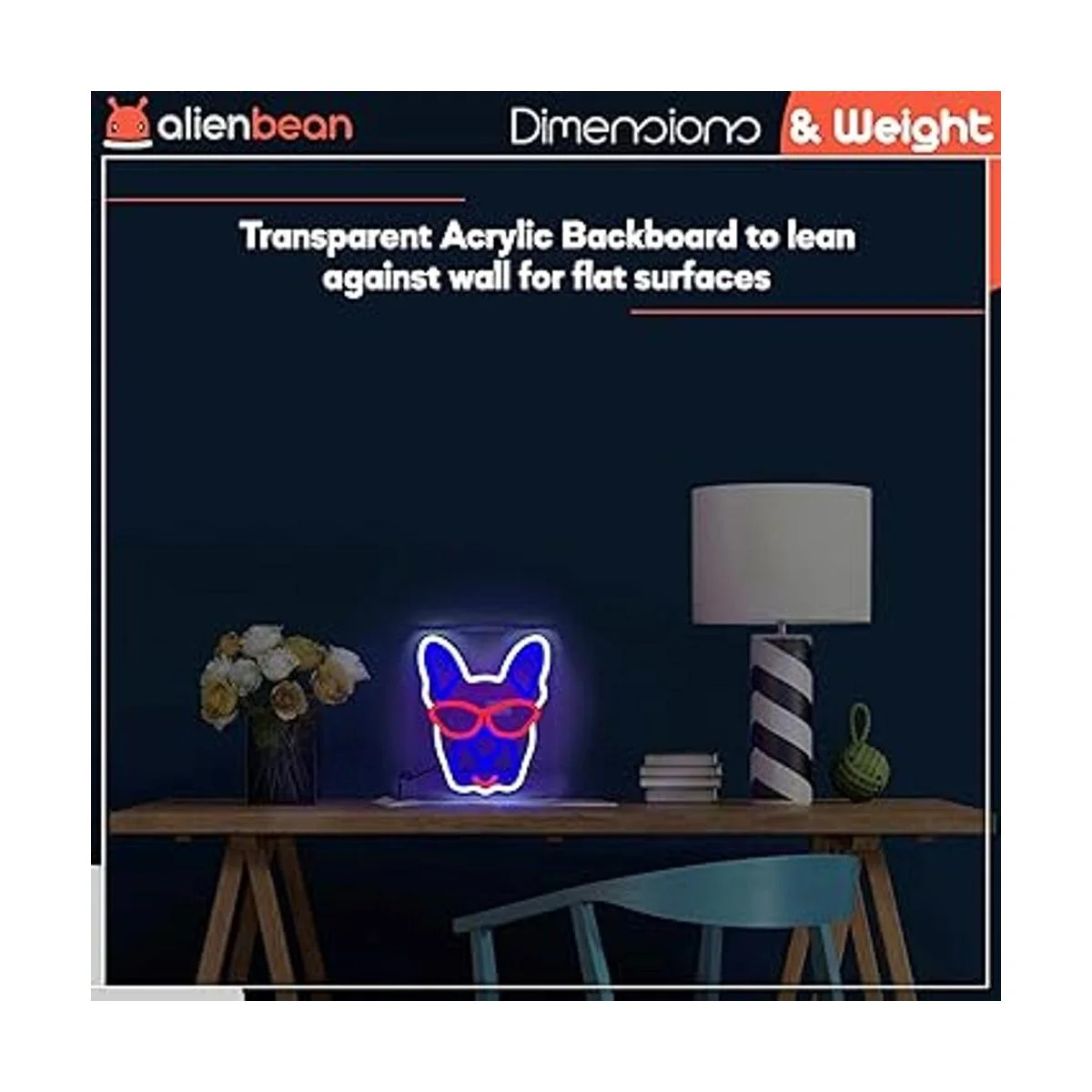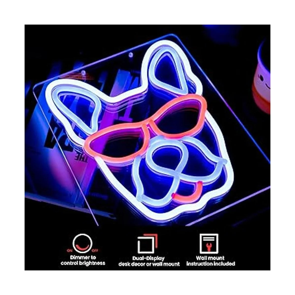 Tablero acrílico: el tablero acrílico grueso permite su uso multifuncional como una luz de escritorio o decoración y acentúa sus colores para dar a tu habitación un cumplido divertido y único. A tus mamás y papás de bulldog francés les encantará