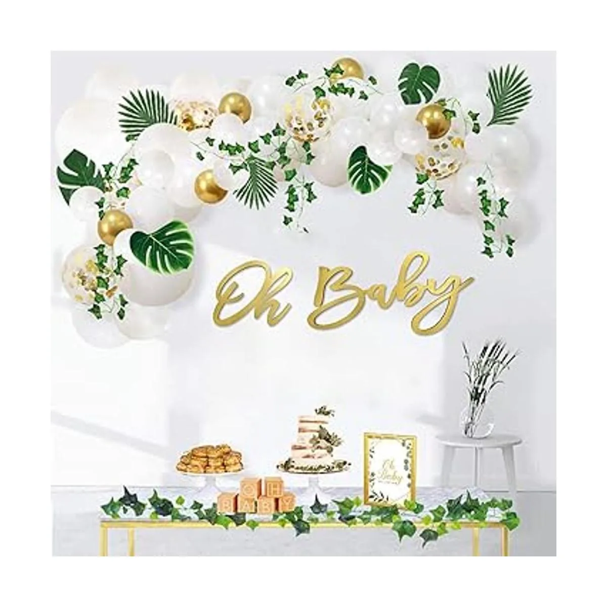 El paquete incluye: letras pintadas en oro Oh: 8 pulgadas de alto x 10 pulgadas de ancho. Bebé: 8 pulgadas de alto x 16 pulgadas de ancho, 4 piezas de pegamento incluidas.