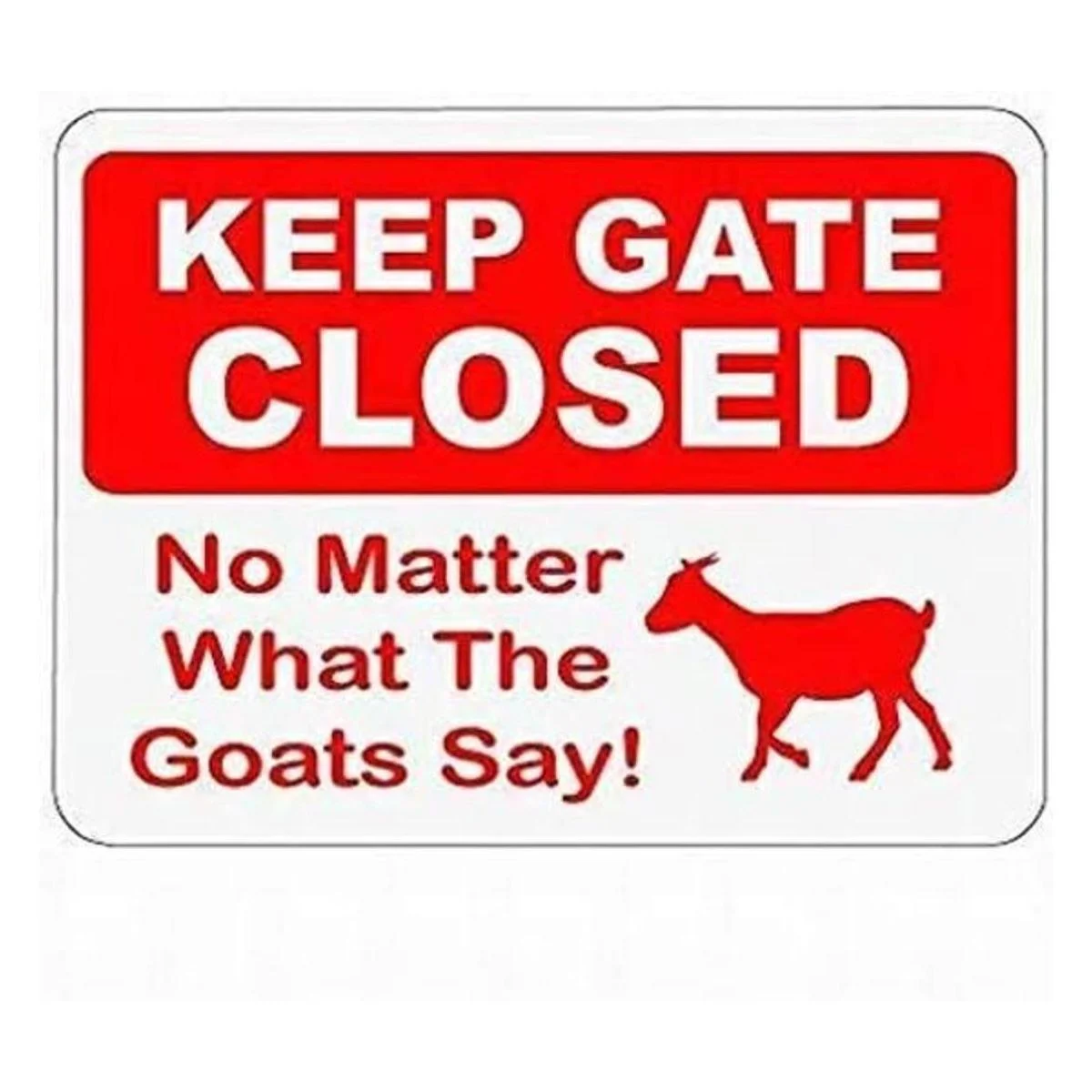 Cartel de metal de 3.1 x 4.7 in con texto en inglés Keep Gate Closed No Matter What The Goats Say