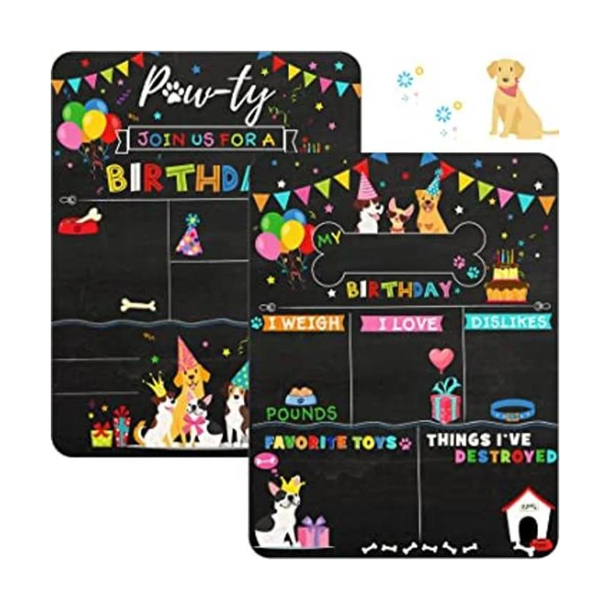 Cartel de pizarra de cumpleaños para mascotas, letrero de pizarra de cumpleaños para perros, colorido para cachorros, letrero de pizarra reutilizable de doble cara para accesorios de fotos, suministros de fiesta, decoración de 13.7 x 10 pulgadas