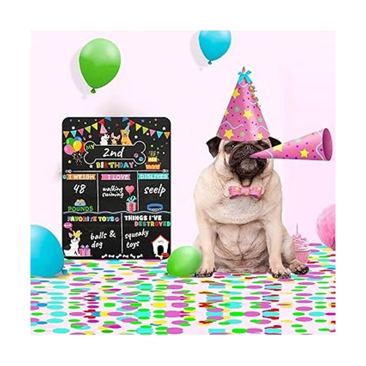 Bonito accesorio para fotos: coloca el letrero de pizarra para mascotas junto a tu perro como accesorio de fotos para celebrar el cumpleaños del perro con tu familia y amigos; disfruta tomando fotos divertidas y haciendo recuerdos de cumpleaños con tu perro