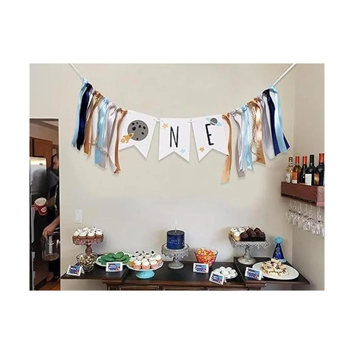 Temática espacial: esta pancarta temática espacial para tronas será una gran adición a la decoración de tu fiesta de primer cumpleaños. Celebra el primer cumpleaños de tu ser querido con esta pancarta de cohete espacial.