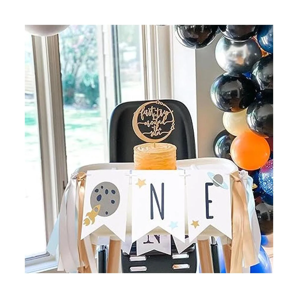 Cartel de primer cumpleaños con tema espacial para el primer cumpleaños, pancarta para silla alta con temática espacial, pancarta para silla alta de primer cumpleaños, cumpleaños del espacio exterior, 3, 2, 1, despegue del universo, órbita el sol, barco cohete pancarta de cohete