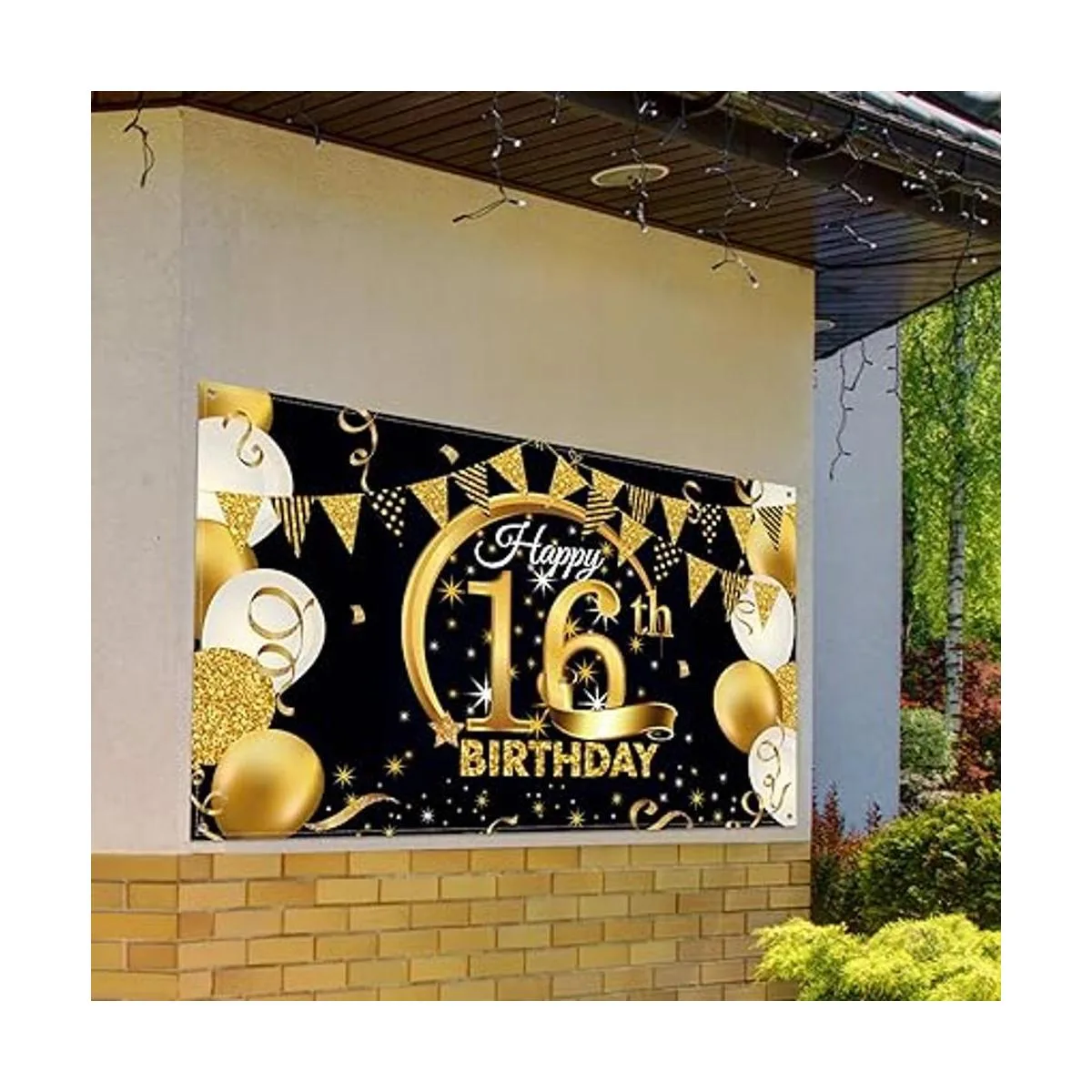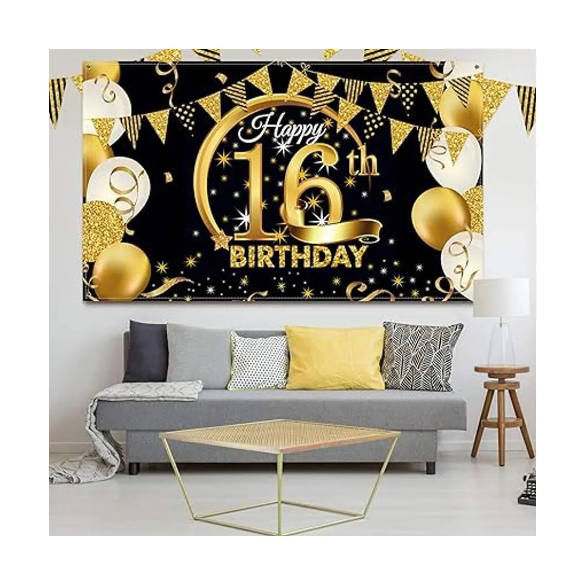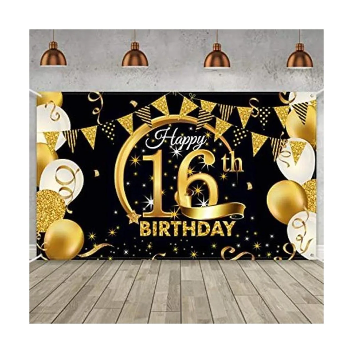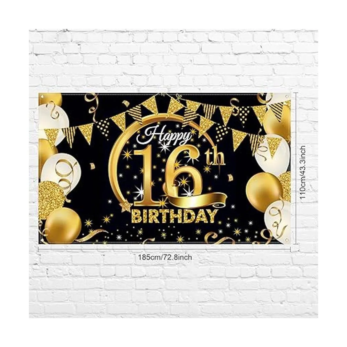 Cartel decorativo extragrande para fiesta de cumpleaños, de tela color negro y dorado, fondo para sesión de fotos de aniversario, mide 185 x 110 cm
