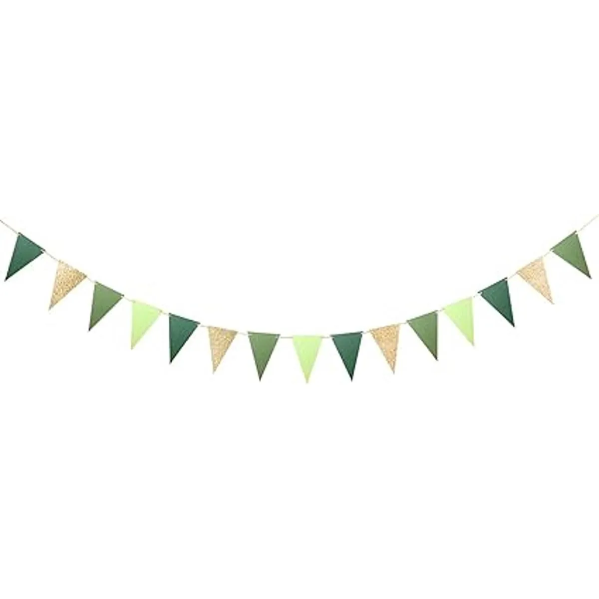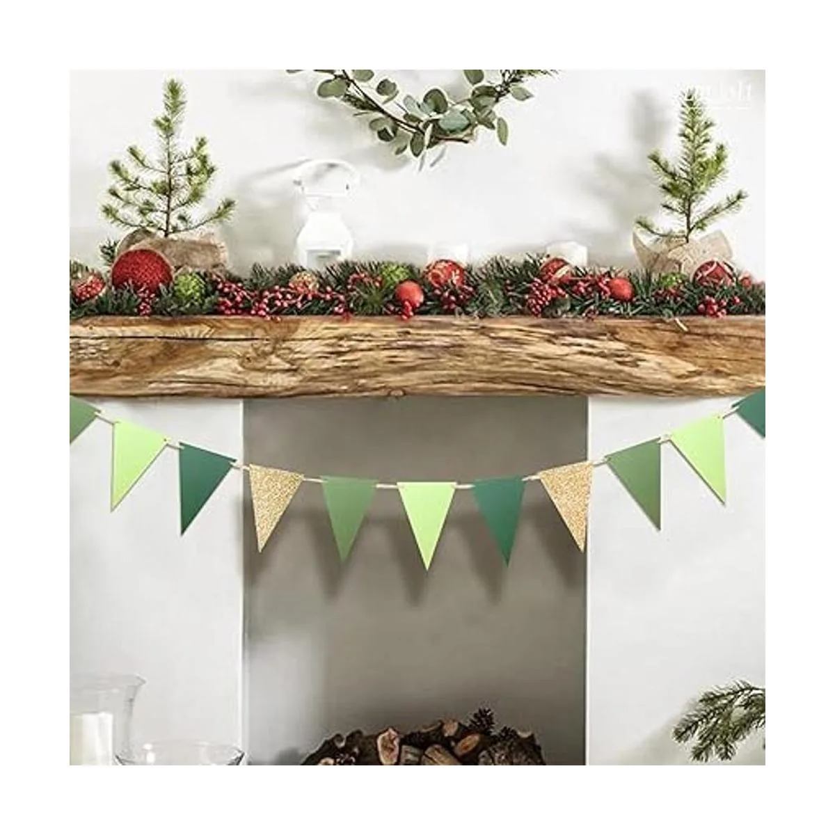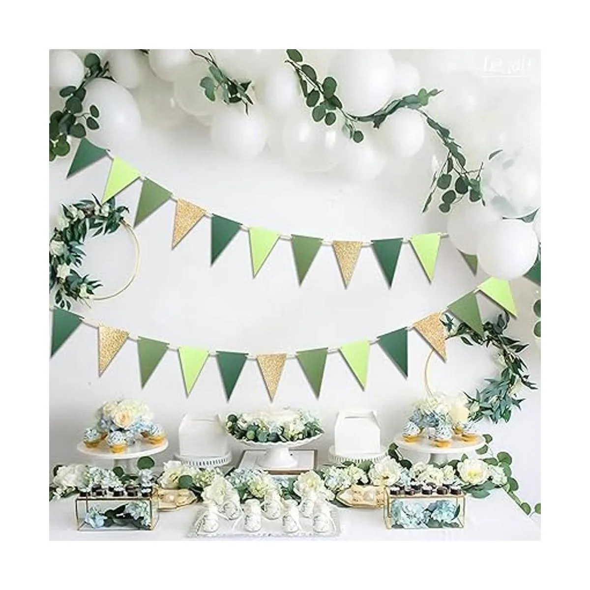 Cartel triangular verde dorado para decoración de fiesta de vegetación, letreros para cumpleaños, guardería, aula, aniversario, decoración de Acción de Gracias, banderas de graduación, 15 unidades atrovirens verde dorado 10 pies