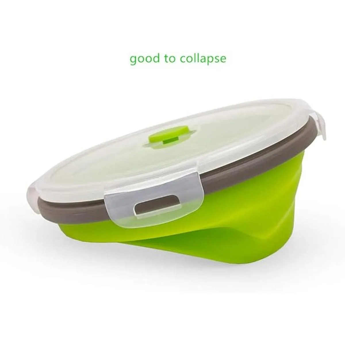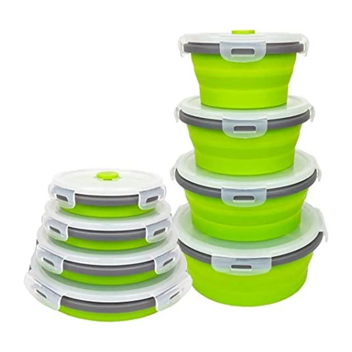 Recipientes plegables que ahorran espacio: el juego de cuencos de silicona se puede plegar al 50 de su altura original para una organización máxima. Ya sea en la cocina o de camping, o viajes en RV, caben en tu armario de cocina, mochila, maletín. Estos recipientes de alimentos plegables se convertirán en tu mejor ayudante de almuerzo en tus viajes
