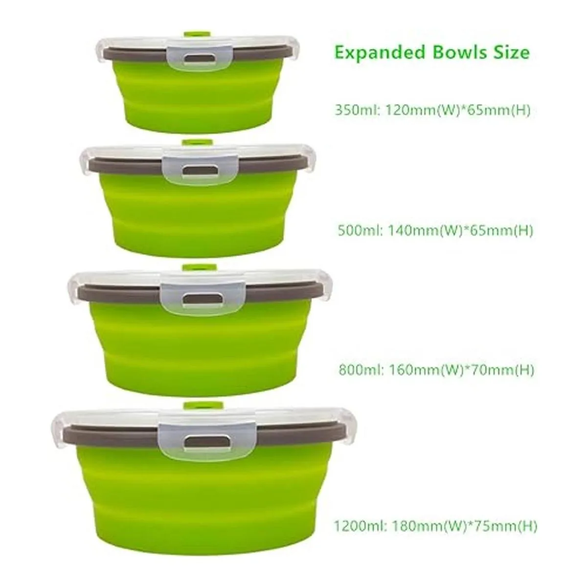 CarTINTS Contenedores de almacenamiento de alimentos plegables con tapas, recipientes de silicona para el almuerzo, caja fuerte para microondas y congelador, juego de 4