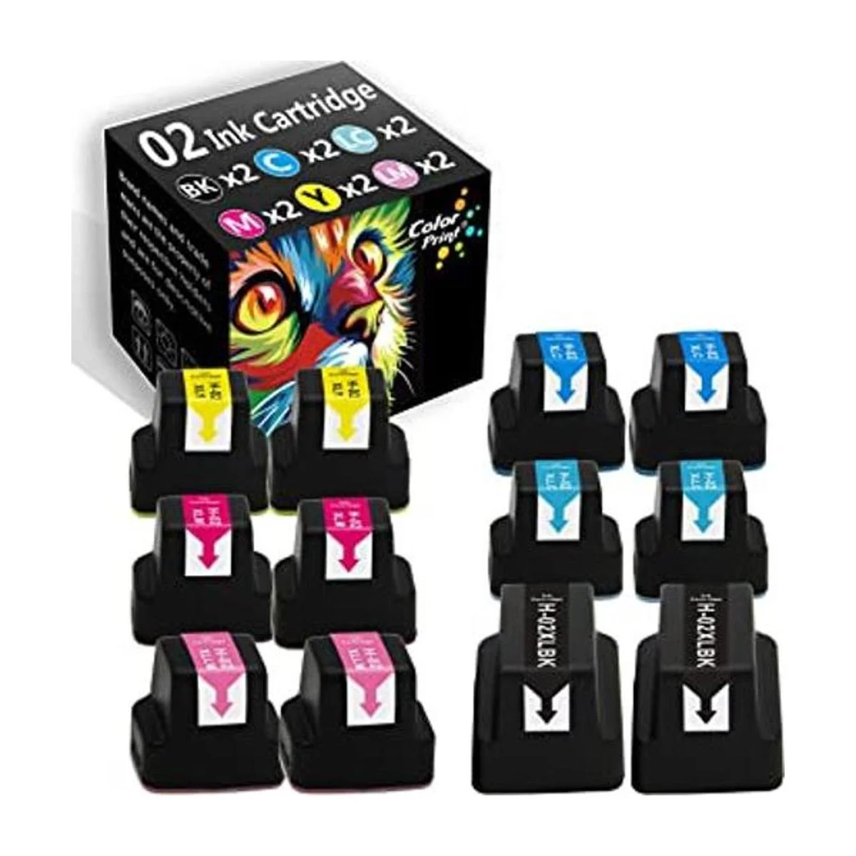 Contenido del paquete: 12 cartuchos de tinta de repuesto compatibles para 02 2 negro/2 cian/2 magenta/2 amarillo/2 cian/2 magenta claro
