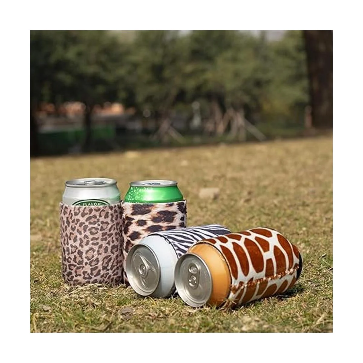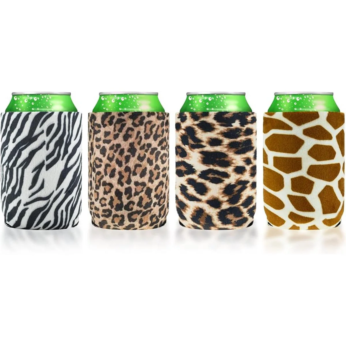 CasaEco Carol Velvet Fundas de neopreno para enfriar latas de cerveza, bebidas frías, cubierta aislada para barbacoa, soltero, boda, fiesta, paquete de 4 guepardo, leopardo, jirafa, cebra