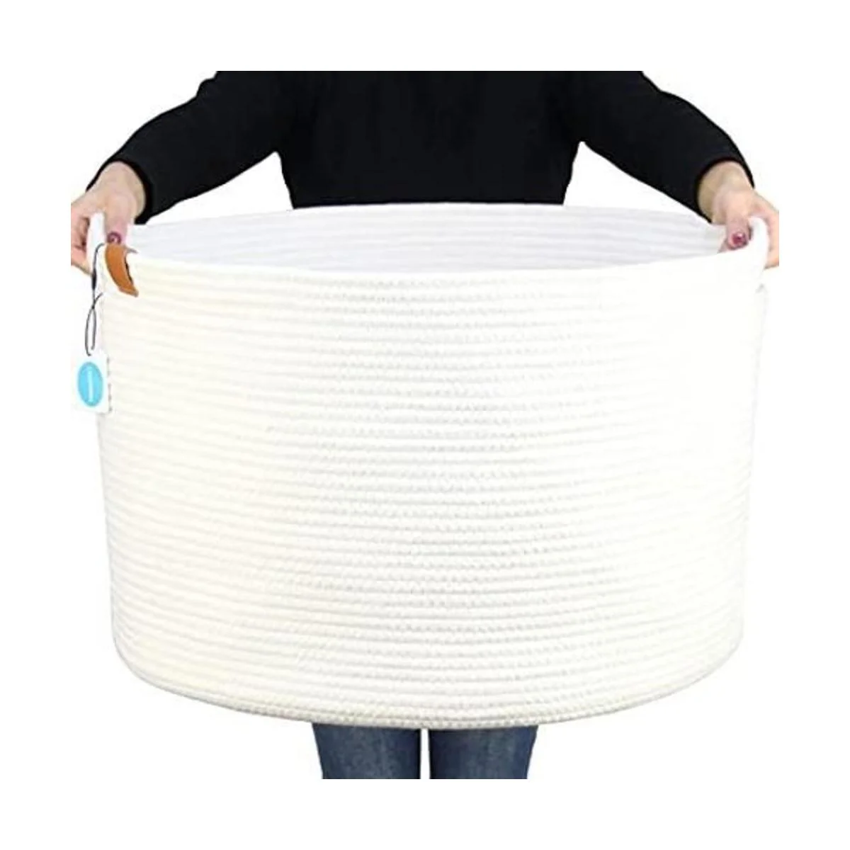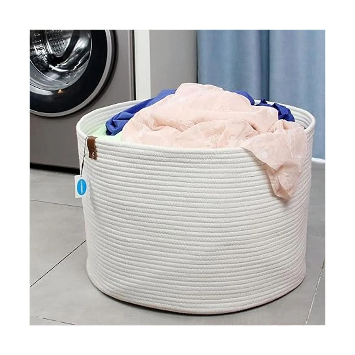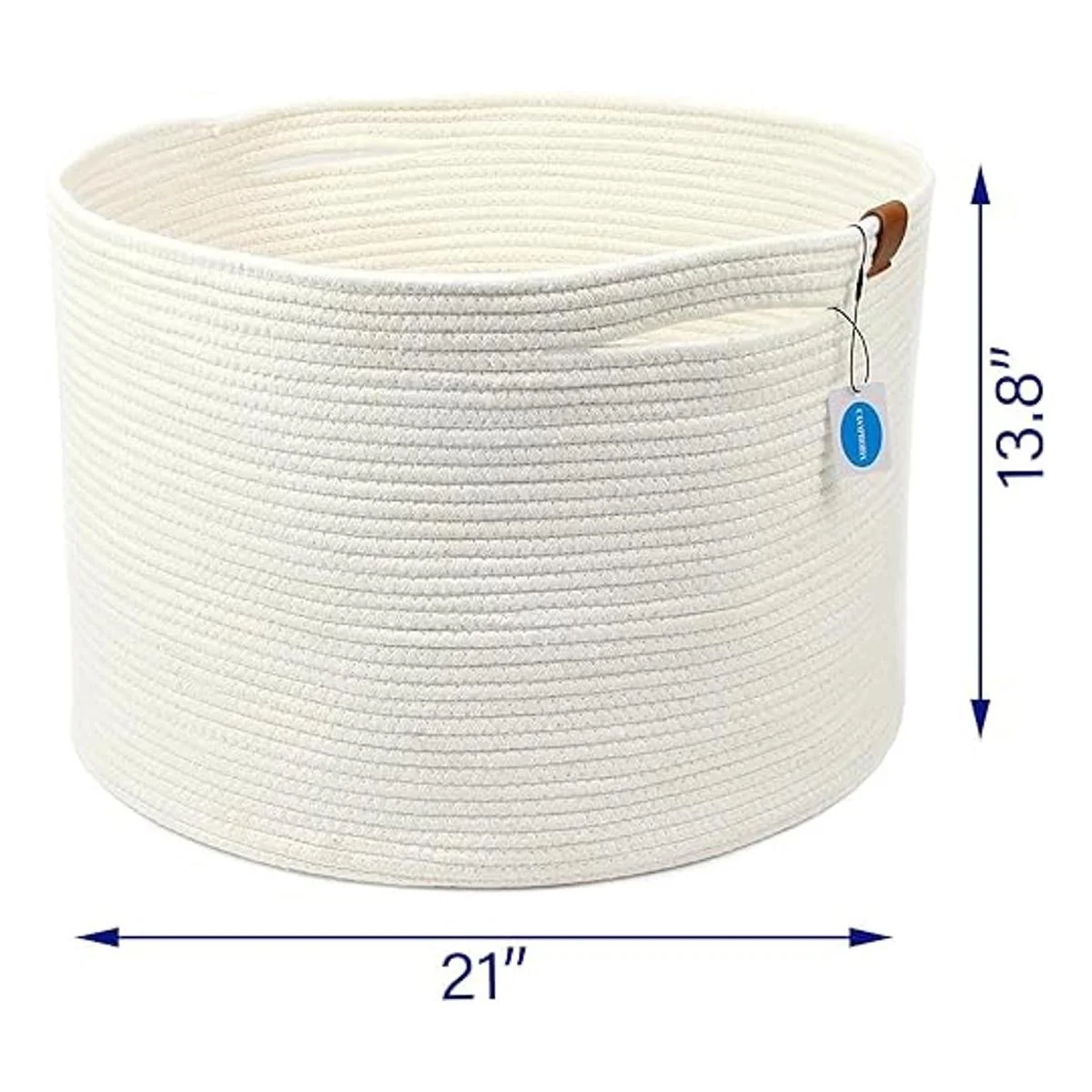 Canastas de almacenamiento de cuerda de algodón de tamaño extragrande de 21 x 13.8 pulgadas, perfectas para almohadas, mantas, edredones o cojines, ropa de invierno, ropa sucia y mucho más. Para mantener tu espacio habitacional limpio y ordenado