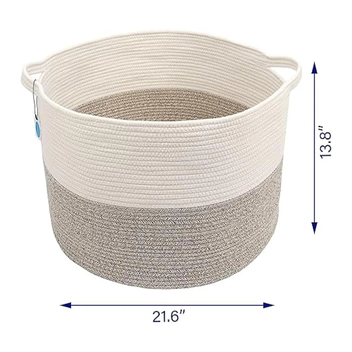 Casaphoria Canasta tejida con hilo de cuerda de algodón 3XL de 21.7 x 21.7 x 13.8 pulgadas, con asa, para almacenamiento de mantas, ropa sucia, edredones, cojines