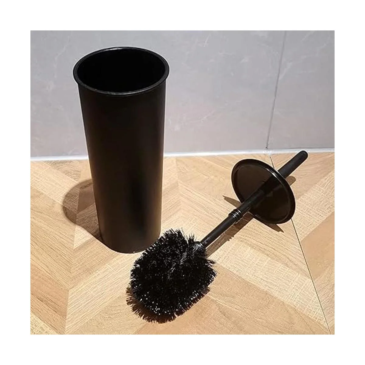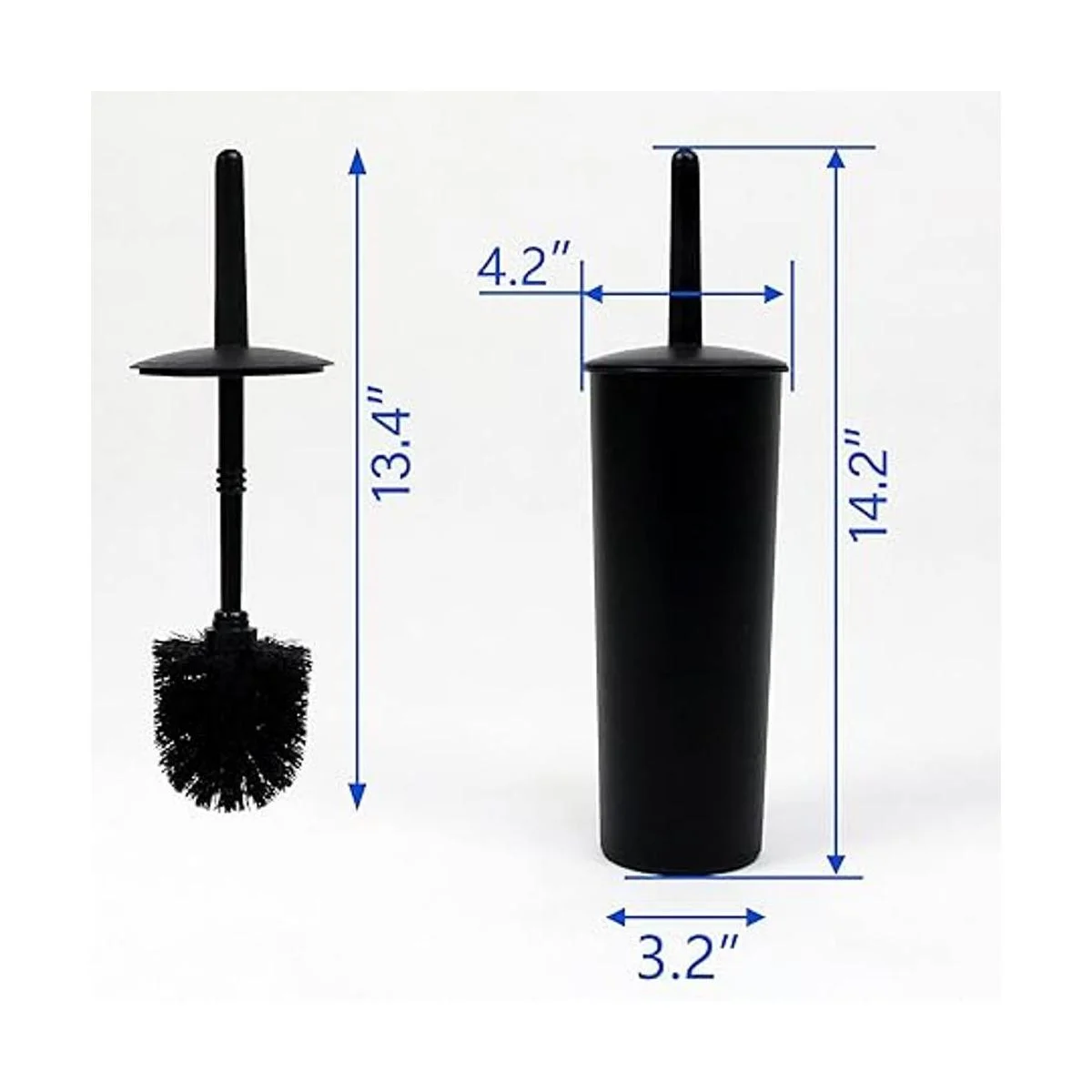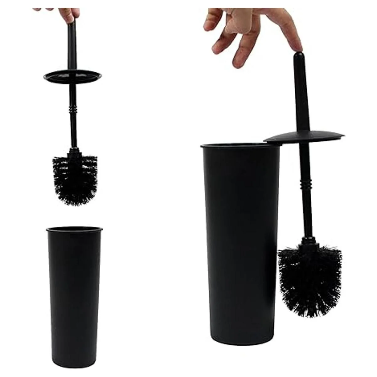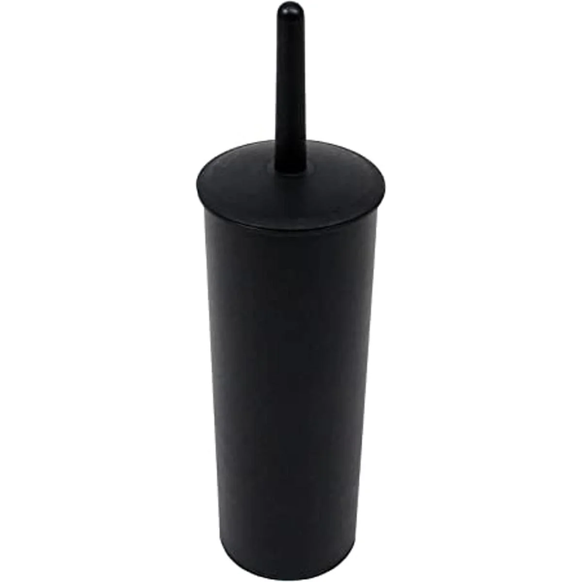 Casaphoria Cepillo y soporte de plástico compacto para inodoro independiente para almacenamiento y organización de baño, ahorro de espacio, resistente, limpieza profunda, cepillo cubierto, color negro