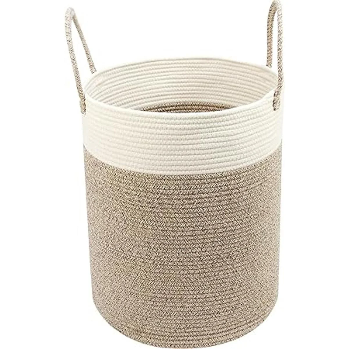 Casaphoria Cesta grande de cuerda de algodón, 58L Cesta tejida plegable Cesta de almacenamiento de ropa para mantas, organización de cuarto de lavandería paquete de 1 blanco y marrón MB2021016