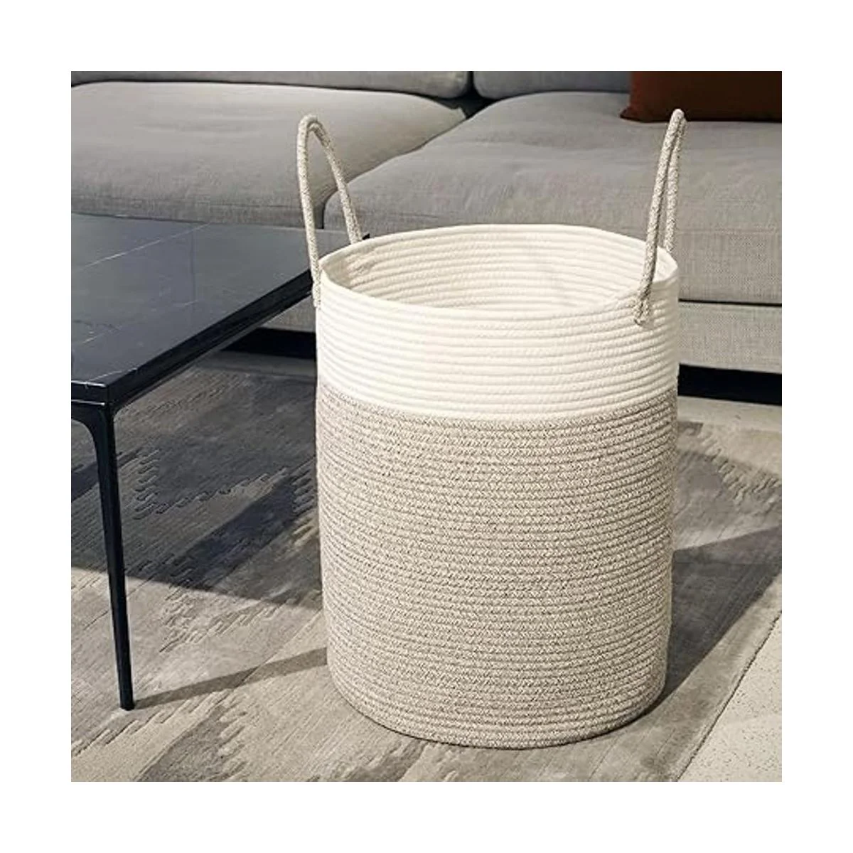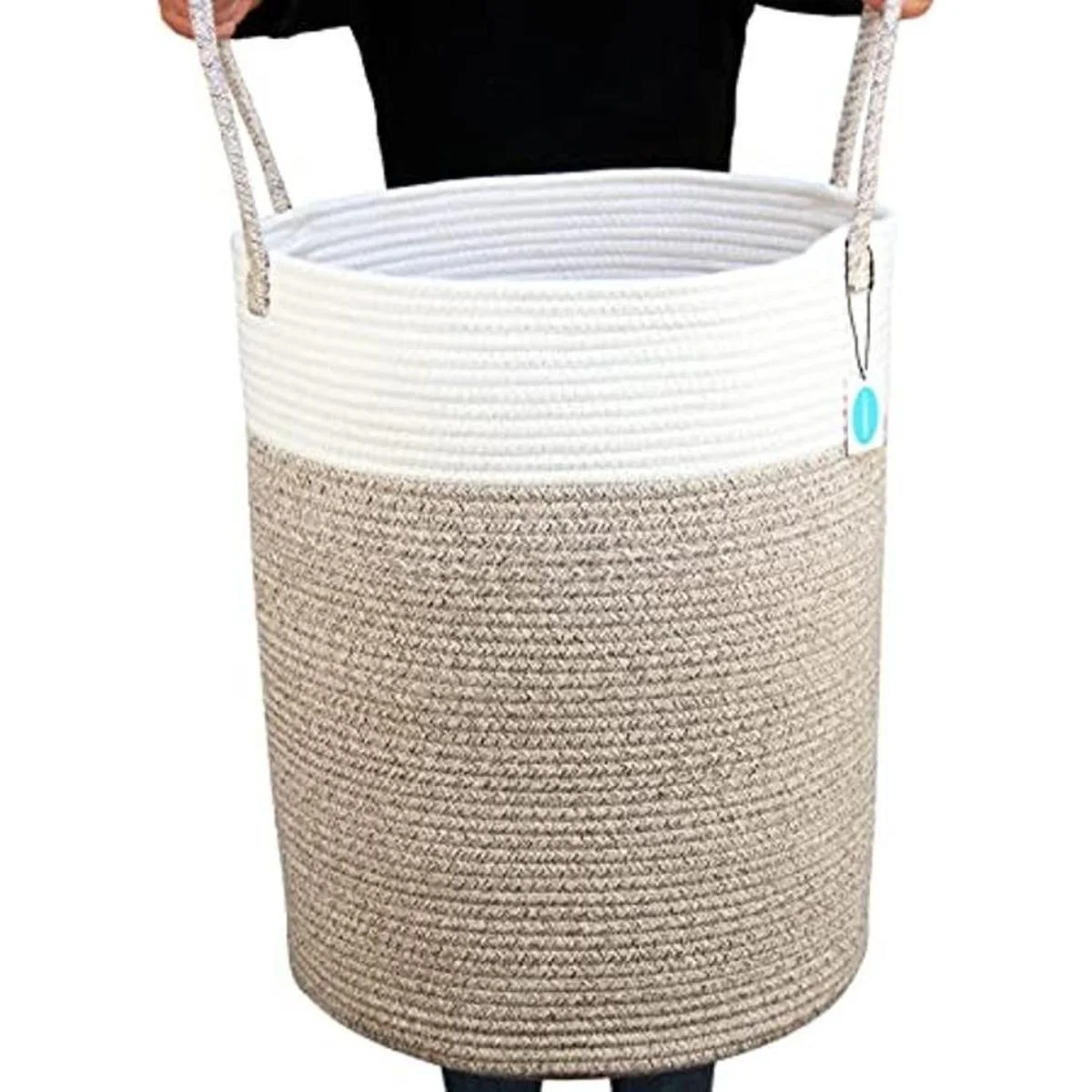 100 algodón natural: olvídate de las cestas de lavandería de plástico baratas y pegajosas, adorna tu hogar con nuestra hermosa cesta de lavandería de cuerda de algodón 100 natural, hecha completamente del mejor algodón, con una estética minimalista y de alta capacidad, diseño transpirable para el uso diario