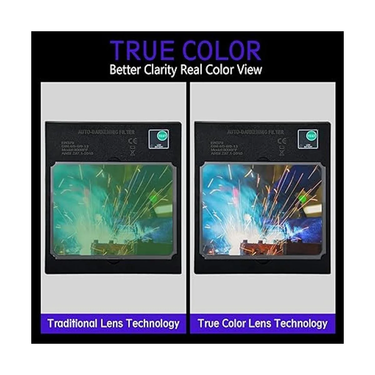 Casco de soldadura de 3.94 x 3.15 pulgadas de color real alimentado por energía solar, pantalla de visión grande de 3.94 x 3.15 pulgadas, pantalla ancha 459913 para casco TIG MIG MAG ARC Weld Hood