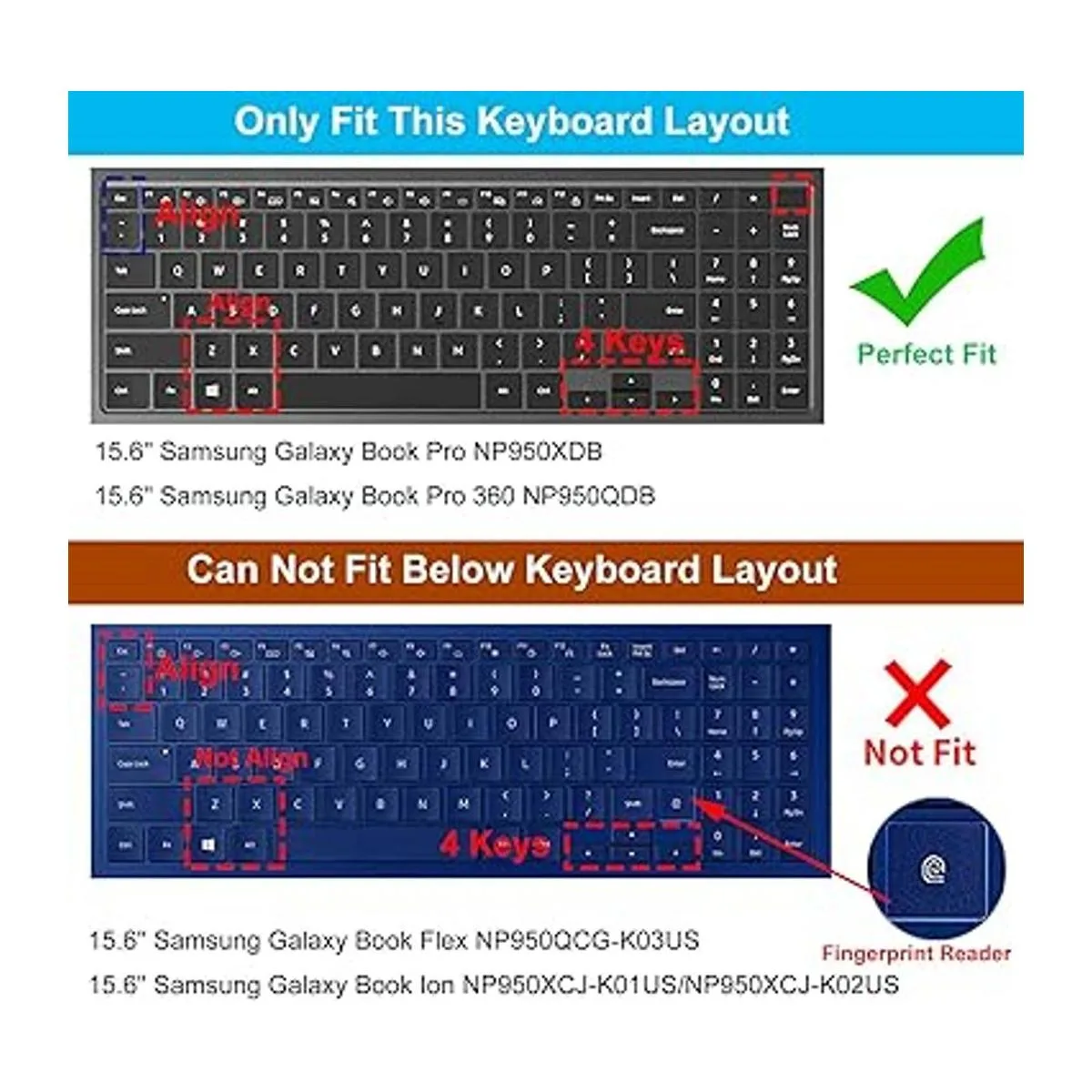 Compara el diseño de tu teclado con la imagen 2 para confirmar si puede ajustar Diseñado para el portátil Samsung Galaxy Book 2 Pro de 15.6 pulgadas NP950XED/KF1US NP950XED/KA1US NP950XED/KA2US NP950XDBKA1US/KA2US/KB1US/KB2US/KB2KC3US/KC4US/KE6US Fingerprint y Samsung Galaxy Book Pro 360 15.6 AMOLED TouchScreen Laptop NP950QDBKA1US/KA3US/KB1US/KB2US/KB3US/KB4US. Protector de cubierta para teclado Samsung Galaxy Book Pro 15.6.