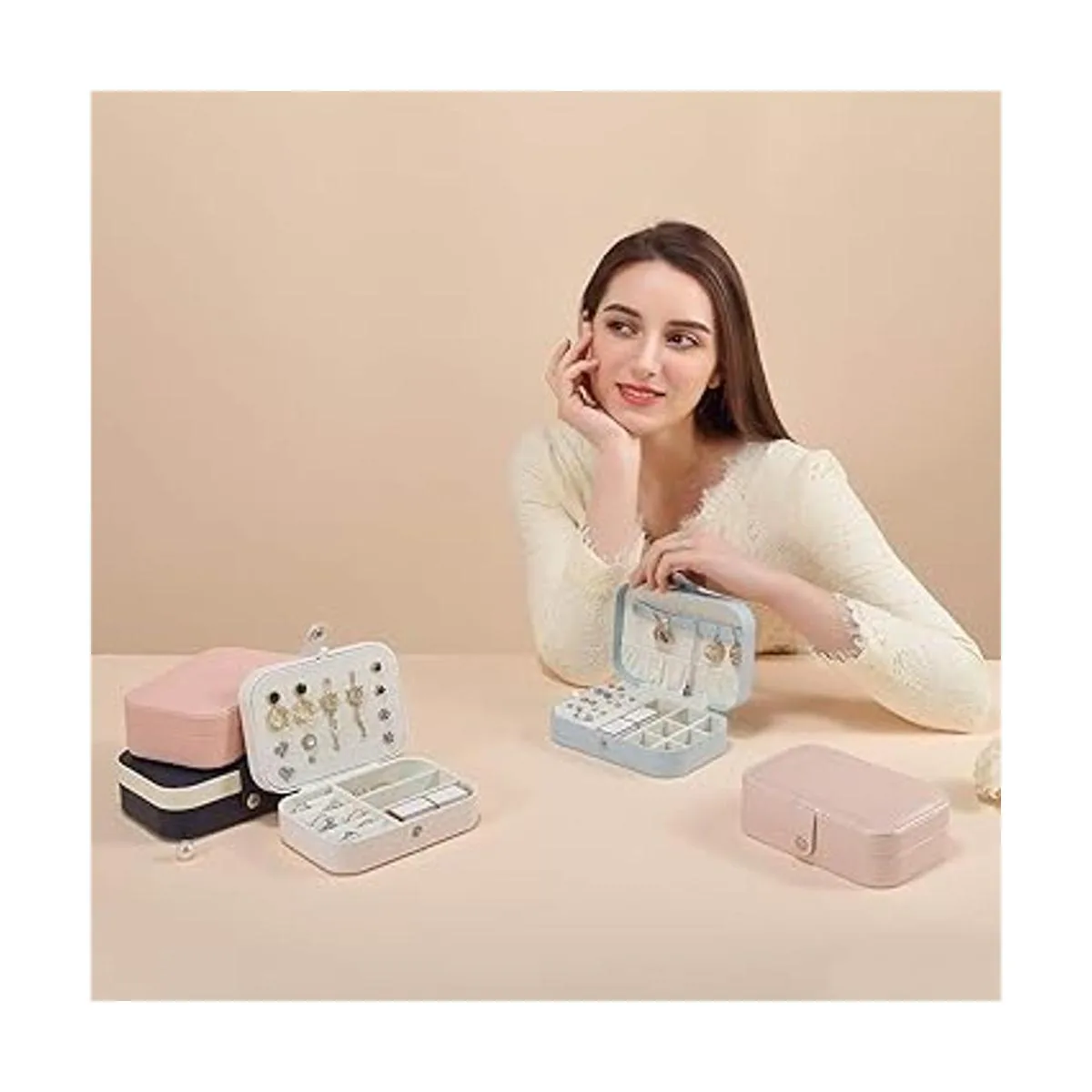 Diseño de doble capa: el diseño de doble capa aísla los aretes, pulseras, anillos y collares en 3 compartimentos diferentes para evitar que se enreden. Las 2 particiones extraíbles para satisfacer tus diferentes necesidades; te permiten llevar tus piezas favoritas relojes, pulseras, pintalabios, etc. en cualquier momento.