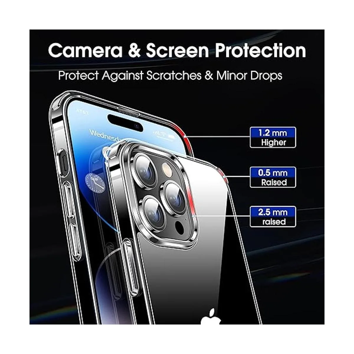 Protección elevada de cámara y pantalla: los biseles elevados evitan que la pantalla y la cámara contra caídas y arañazos. El pequeño diseño de bordes de 0.098 in sobre la cámara, biseles de 0.047 in sobre la pantalla y bordes de esquina elevados de 0.020 in en la parte posterior proporciona una protección adicional y completa. Diseñada para iPhone 14 Pro Max