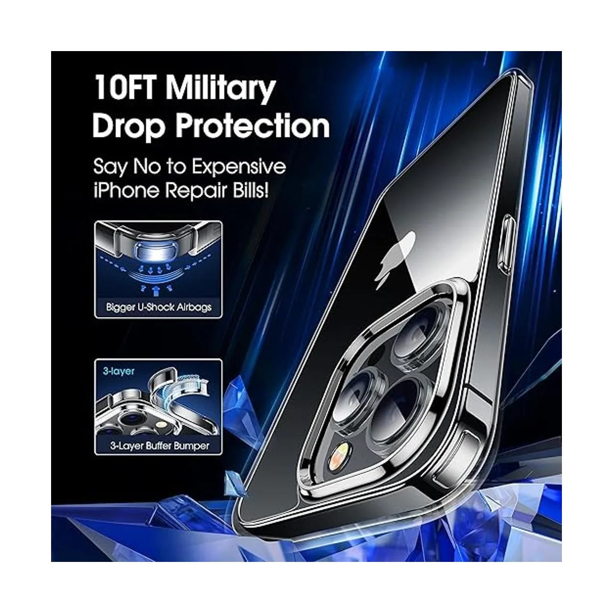 Claridad de larga duración: utilizando material de TPU y PC ultra transparente de alta calidad de Bayer, lo que te permite admirar la belleza sublime original para iPhone 14 Pro Max mientras que no se grasa cuando se utiliza. Nunca amarillea gracias al revestimiento antioxidante de diamante de grado nano que puede resistir eficazmente el 99.9 del amarilleamiento causado por los rayos ultravioleta y el sudor. Diseñada para iPhone 14 Pro Max