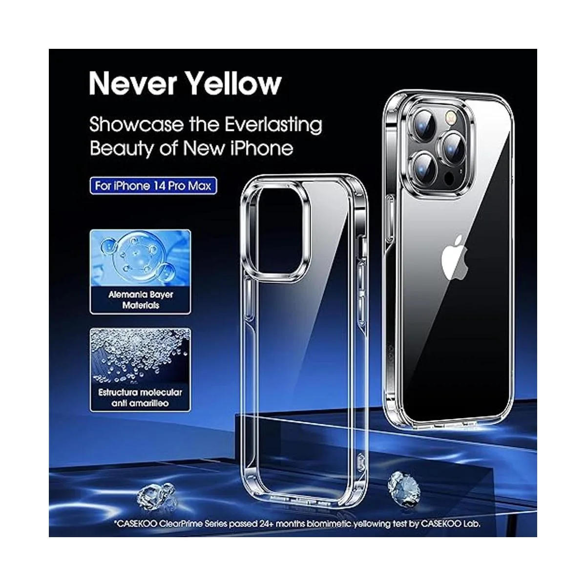 CASEKOO Funda transparente para iPhone 14 Pro Max, nunca amarilla Protección militar contra caídas Funda protectora a prueba de golpes, 6.7 pulgadas 2022, transparente
