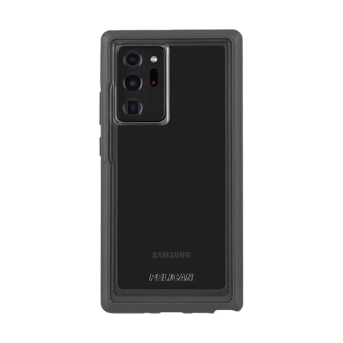 Serie Voyager: esta funda Pelican para Samsung Galaxy Note 20 Ultra 5G con parte trasera transparente y bordes grises muestra y mejora el aspecto natural de tu teléfono sin comprometer la funcionalidad de tu dispositivo, especialmente hecha para aquellos que necesitan más que protección; cubre puertos para evitar que cualquier polvo entre y raye el cuerpo del teléfono, y ofrece una alta protección