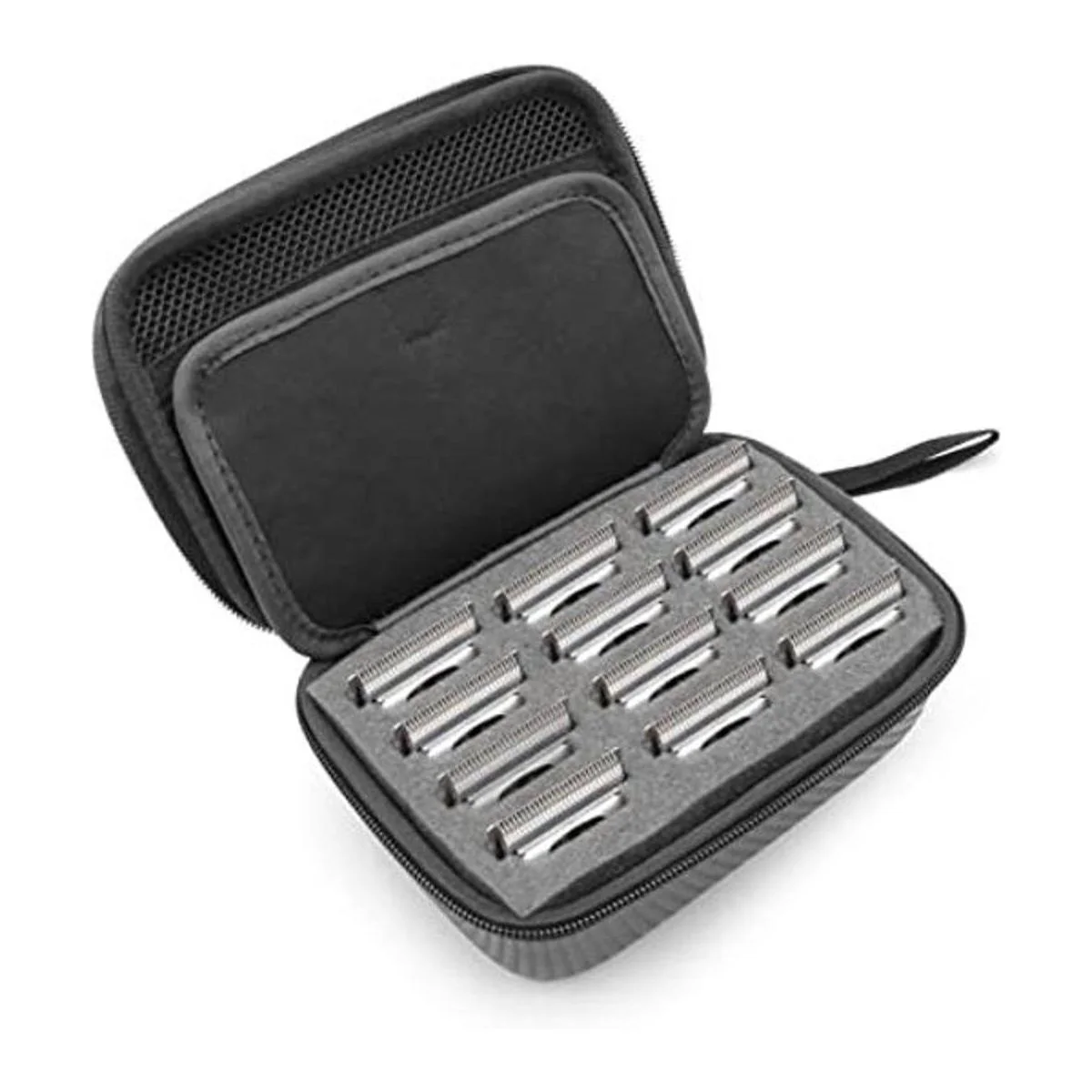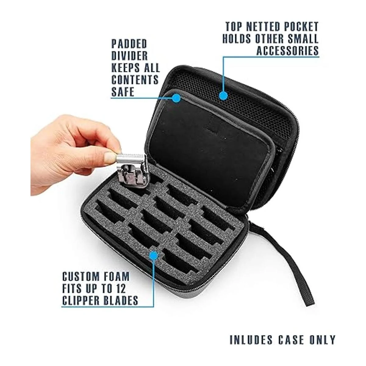 Exterior protector de carcasa dura: almacena de forma segura hasta 12 cuchillas de metal desmontables profesionales y pequeños accesorios de cortadora en esta funda dura duradera. La funda protectora CASEMATIX Clipper Case Blade de almacenamiento fue diseñada para protección.