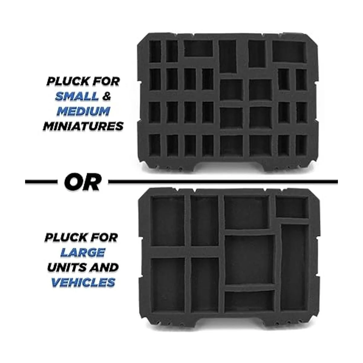 2 capas de espuma personalizable: nuestra funda de espuma para miniaturas cuenta con dos bandejas de espuma que absorben los golpes que se pueden personalizar para adaptarse perfectamente a tu minis. La espuma está precortada y desplumada, y cada capa ofrece 14 x 10.5 x 1.75 pulgadas de espacio utilizable.