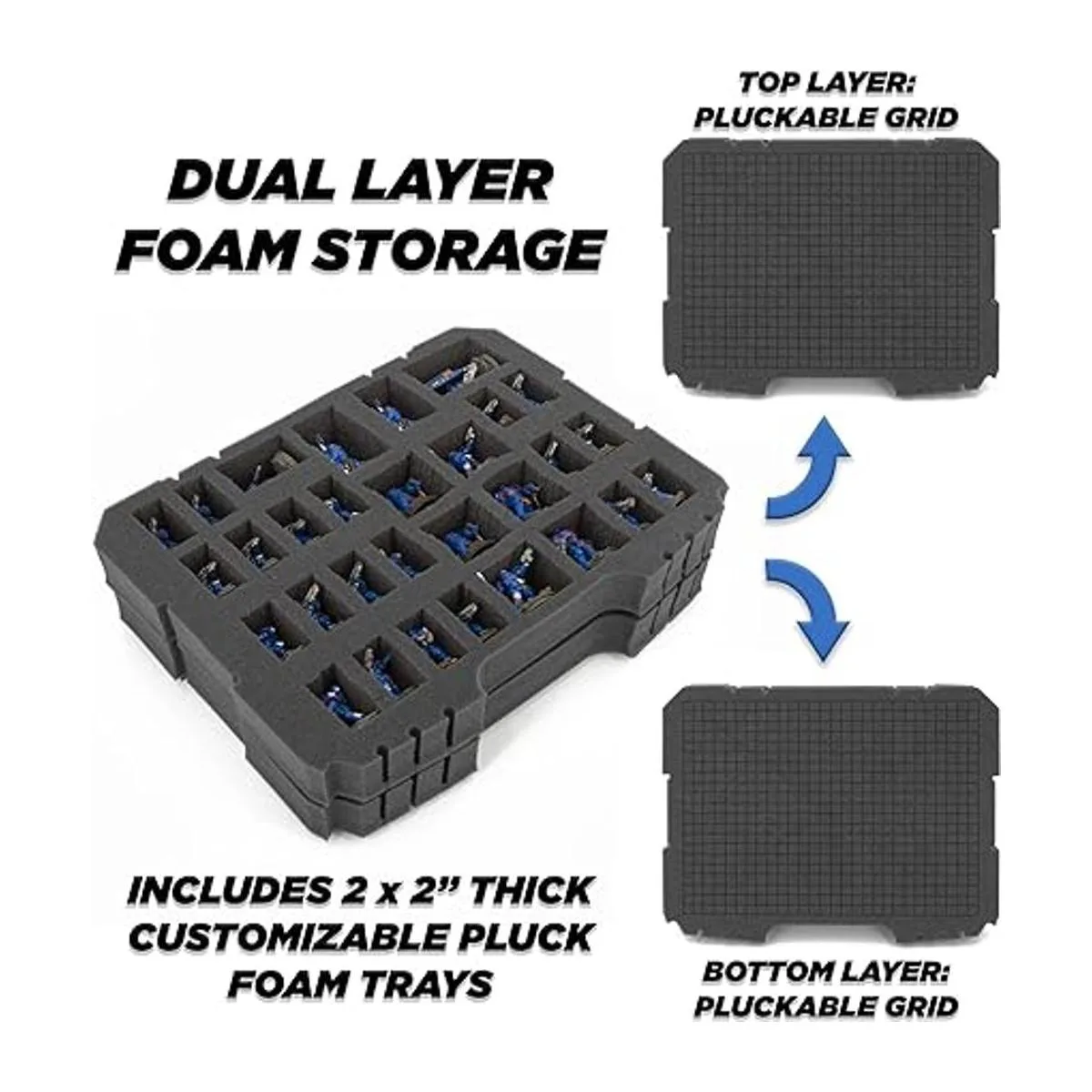 CASEMATIX Funda rígida de almacenamiento en miniatura, funda de espuma personalizable de doble capa para transportar miniaturas estándar, unidades grandes y vehículos, compatible con Warhammer 40k, DND y mucho más