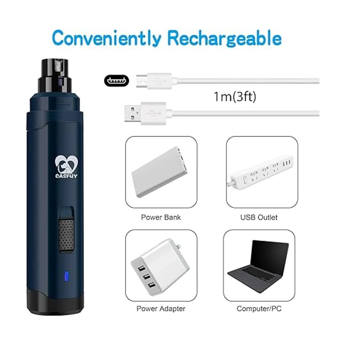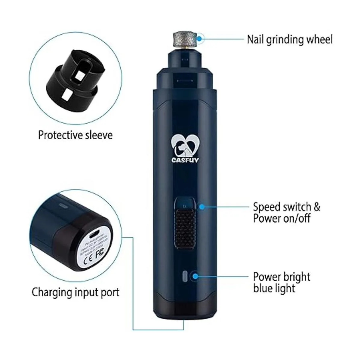 Casfuy Molinillo de uñas para perros mejorado, profesional de 2 velocidades, recargable eléctrica, recortadora de uñas para mascotas, sin dolor, cuidado y suavizado para perros y gatos pequeños, medianos y grandes 6 colores