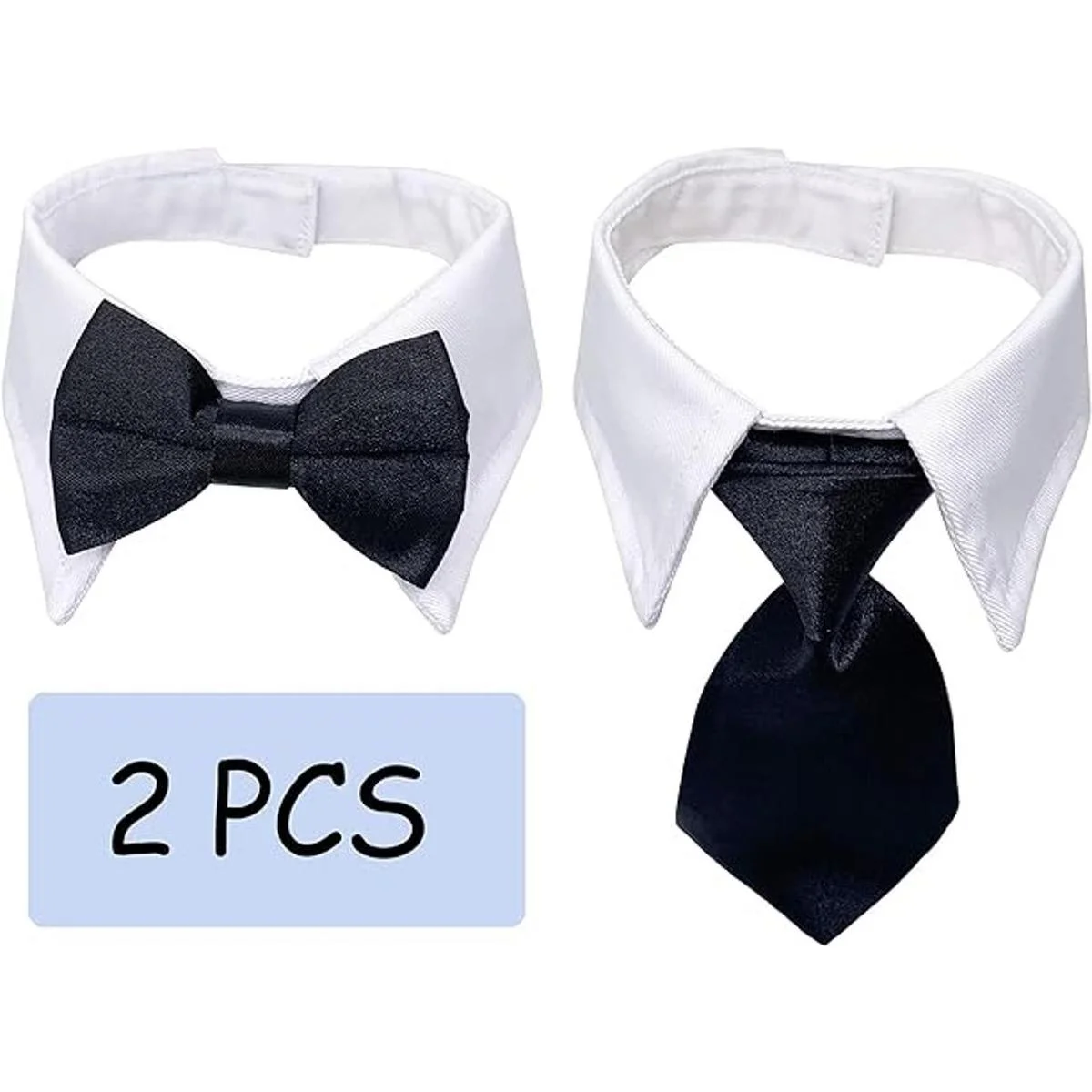 Casidoxi Dog Cat Tuxedo Collar, Cat Wedding Bowtie, Puppy Birthday Easter Valentines Tux Collar Bow Tie for Dog Cat