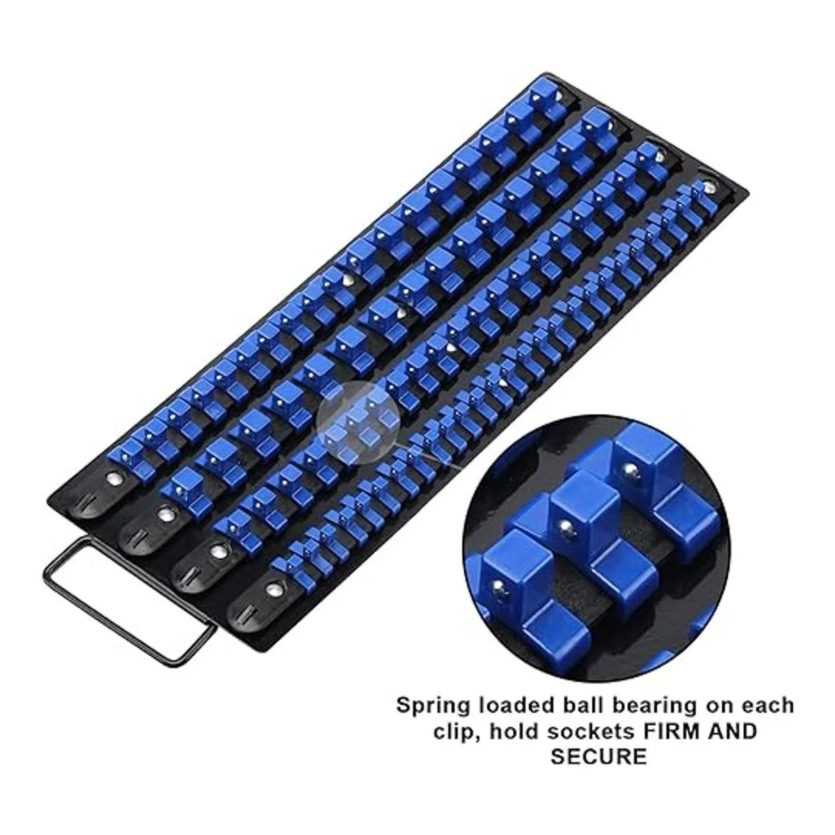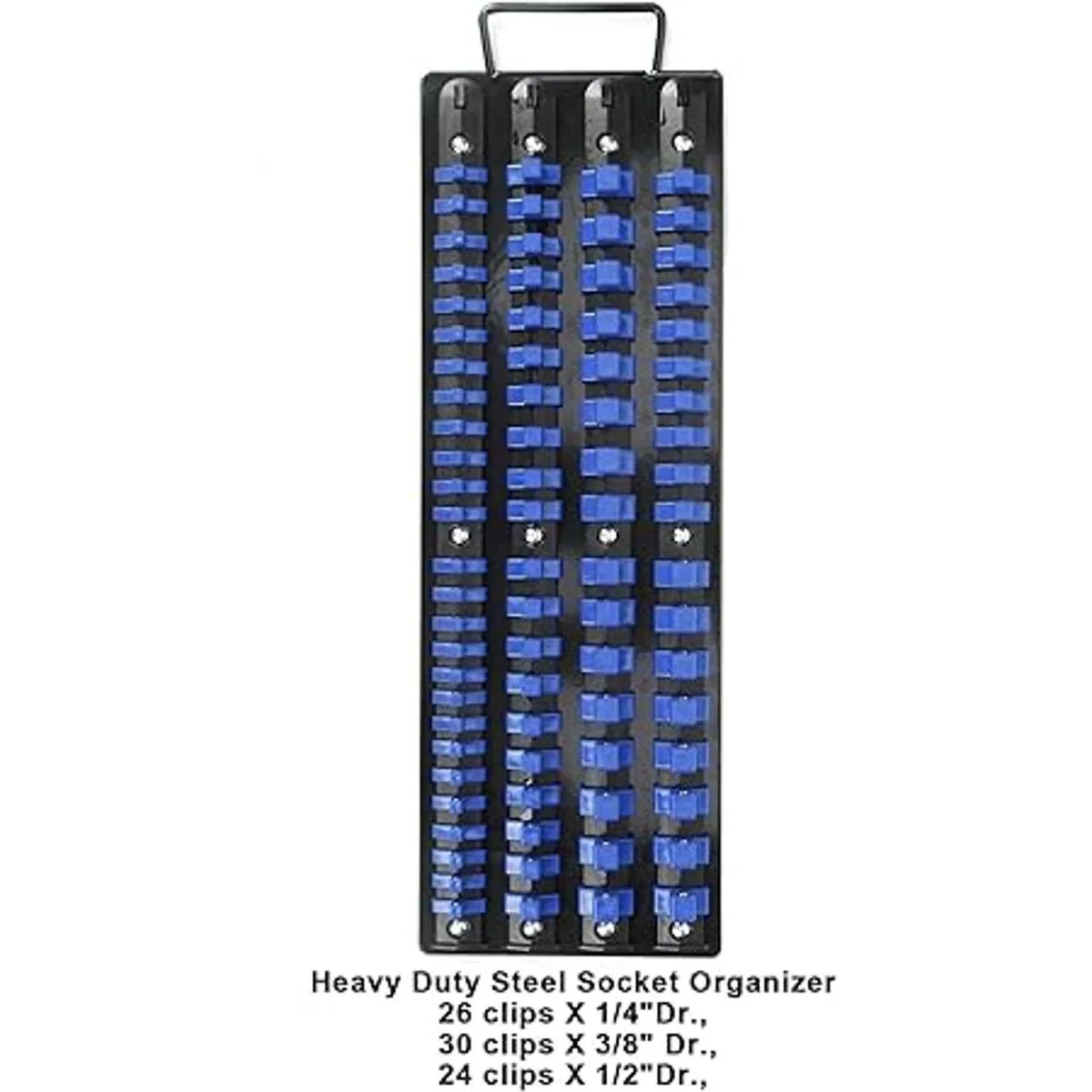 Capacidad para hasta 80 enchufes: 26 clips de 1/4 pulgadas, 30 clips de 3/8 pulgadas, 24 clips de 1/2 pulgadas