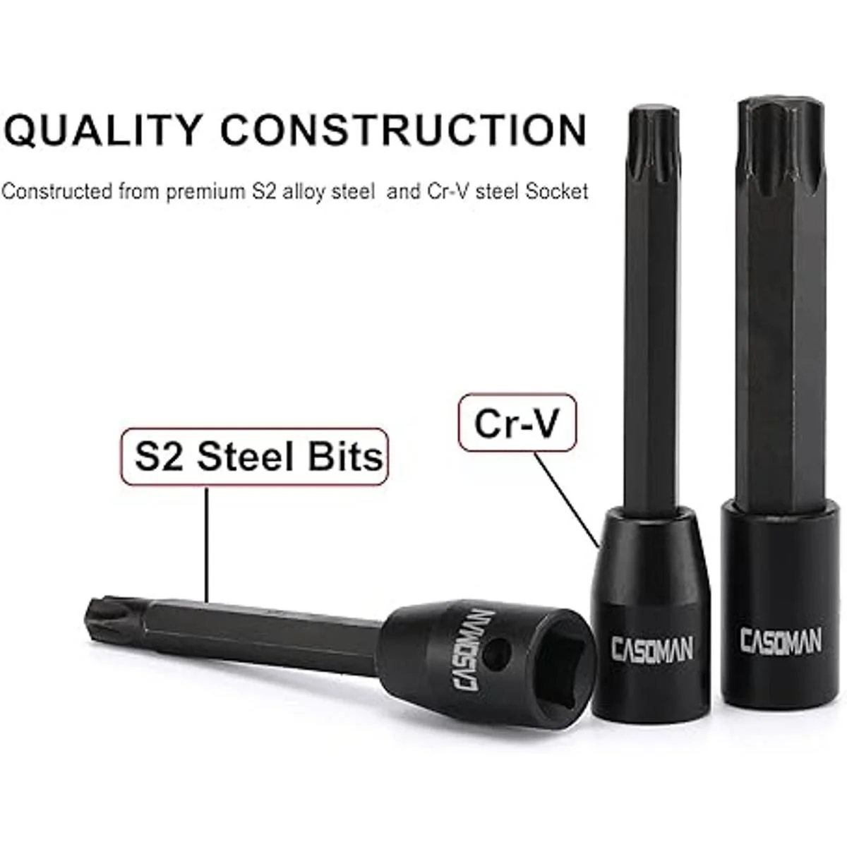 Brocas hechas de acero de aleación S2 de alta calidad para una dureza superior y asegurar la longevidad, los enchufes de acero CrV proporcionan un par de torsión superior para una mayor potencia de giro.