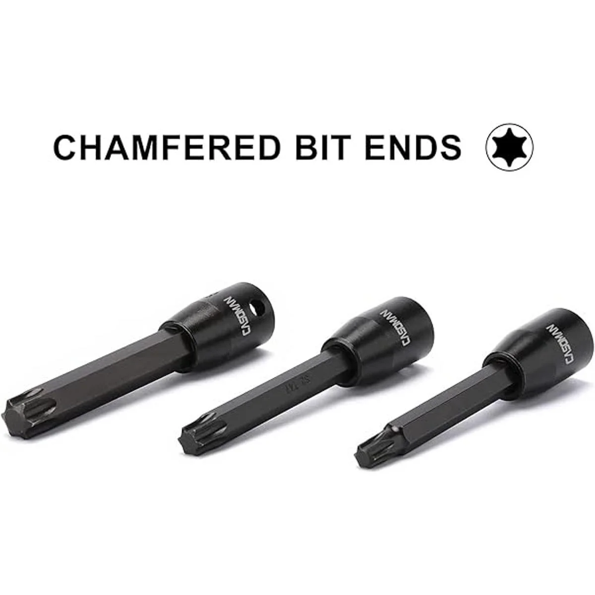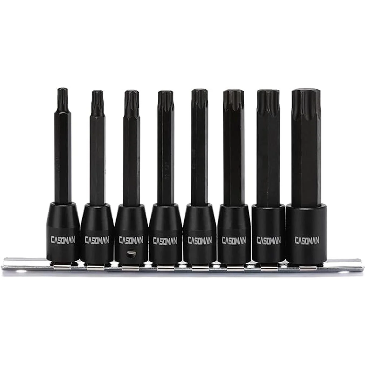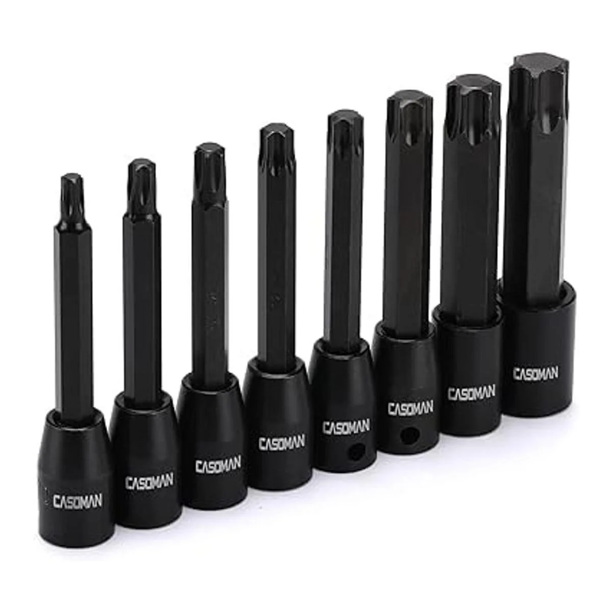 CASOMAN Juego de 8 llaves Torx Star de 38 pulgadas extra largas, T30T70, acero S2, punta Torx de 3.5 pulgadas de longitud en 38 pulgadas Dr.