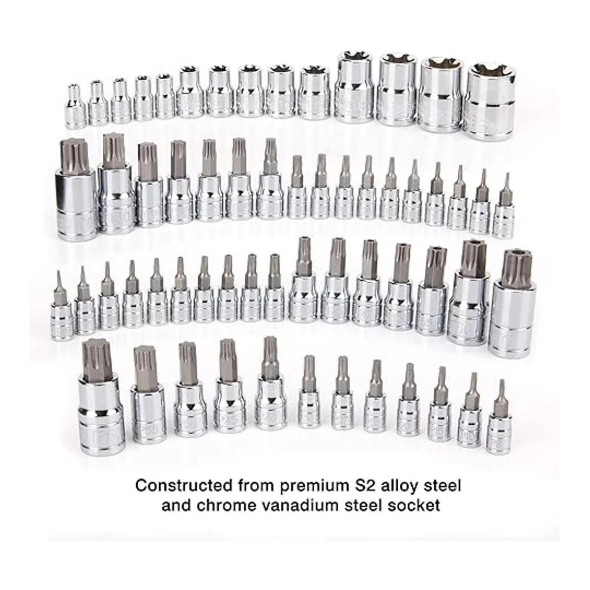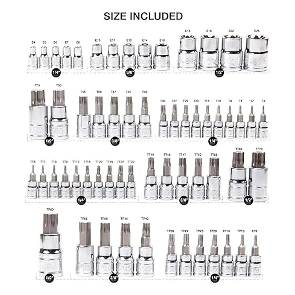 CASOMAN Master Torx Juego de 60 tomas de corriente Torx y enchufe externo Torx, acero S2 y CrV, E4E24, T6T70, TT6TT70, TP8TP60
