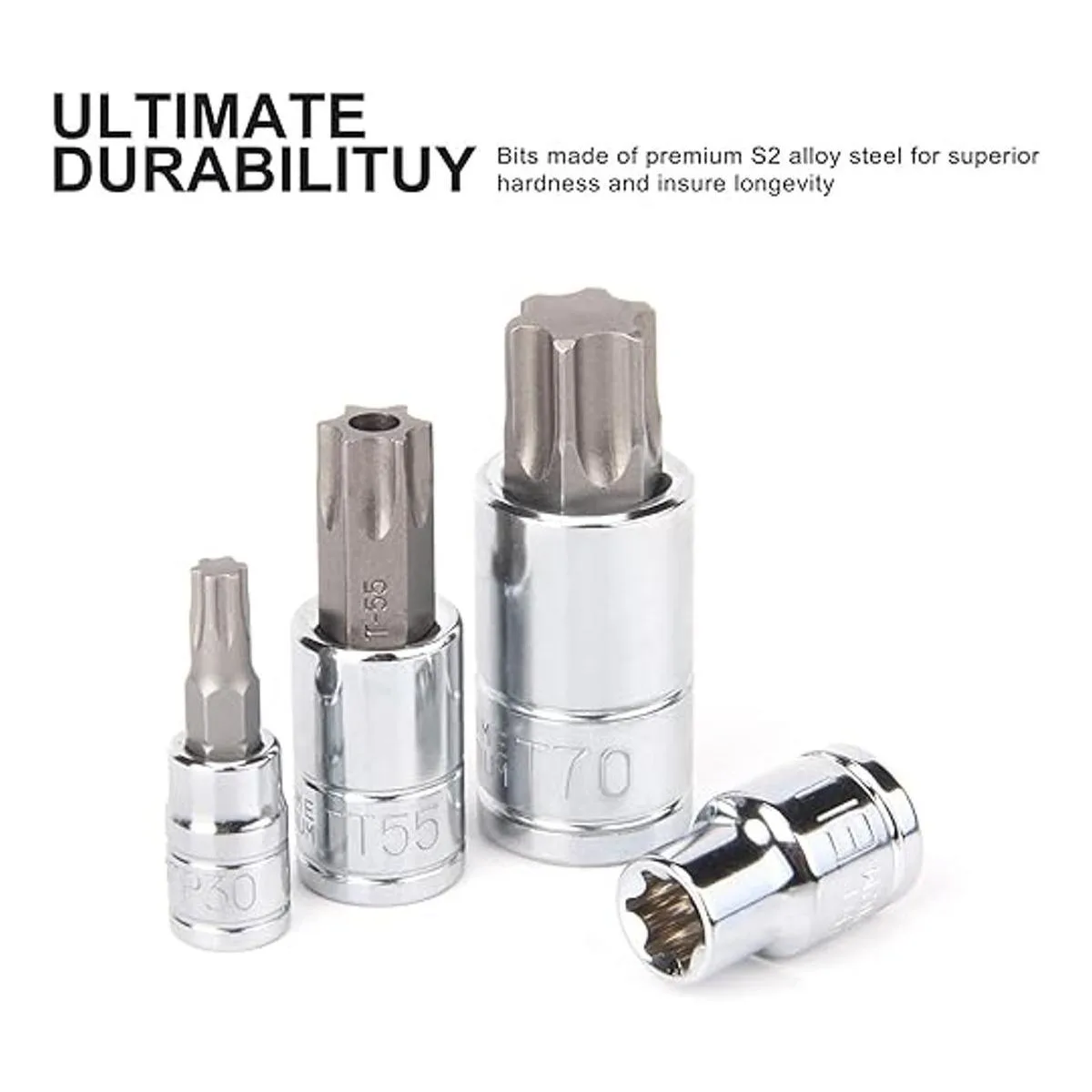 Este juego incluye: 14 piezas Torx E: E4E24, 17 piezas Torx Bit Socket, T6T70, 17 piezas Torx Tamper Bit Socket: TT6TT70, 12 piezas Torx Plus: TP8TP60