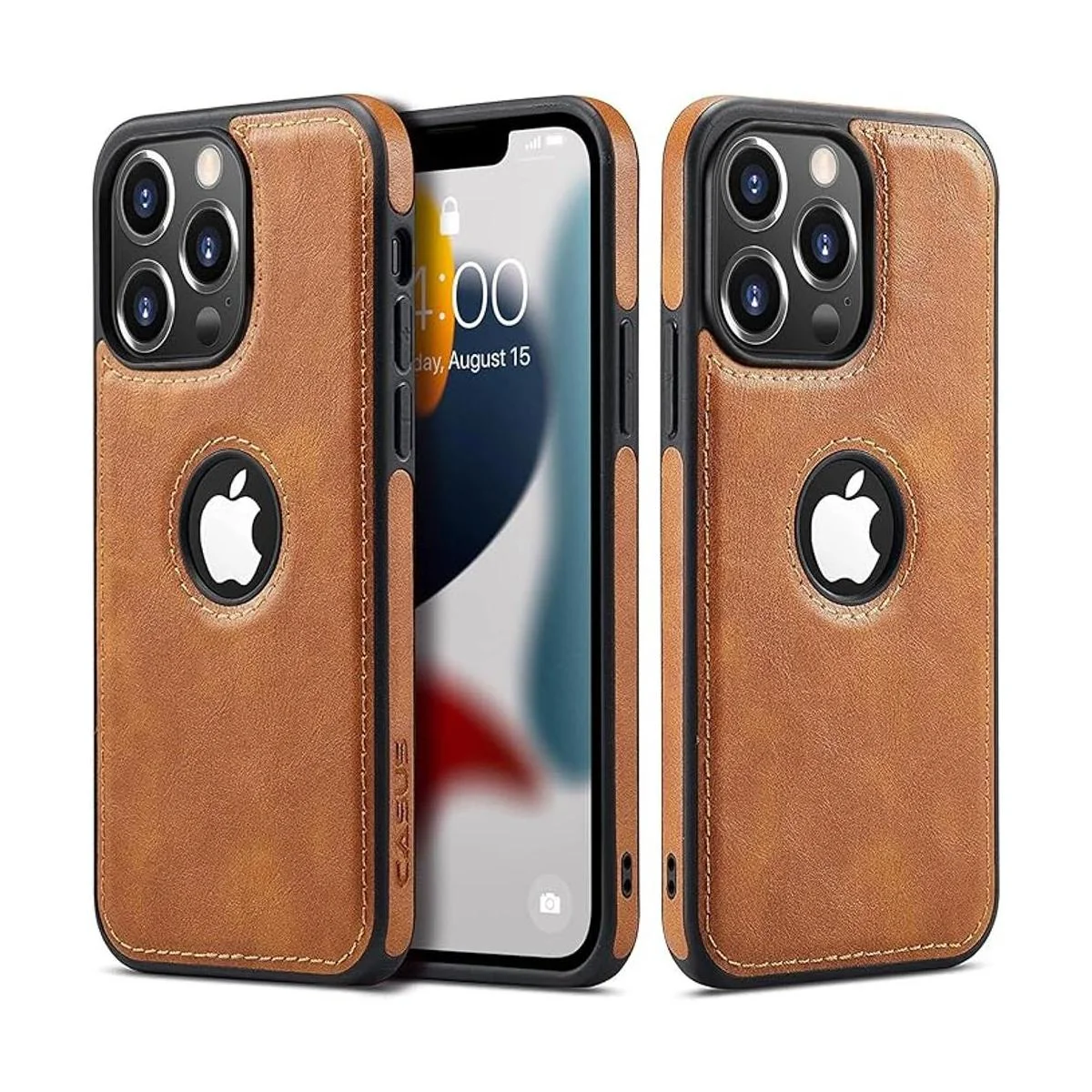 Casus Logo View Compatible con iPhone 13 Pro Funda Delgada de Cuero Vegano Premium Clásico Lujo Elegante Cubierta Delgada 2021 6.1 pulgadas marrón