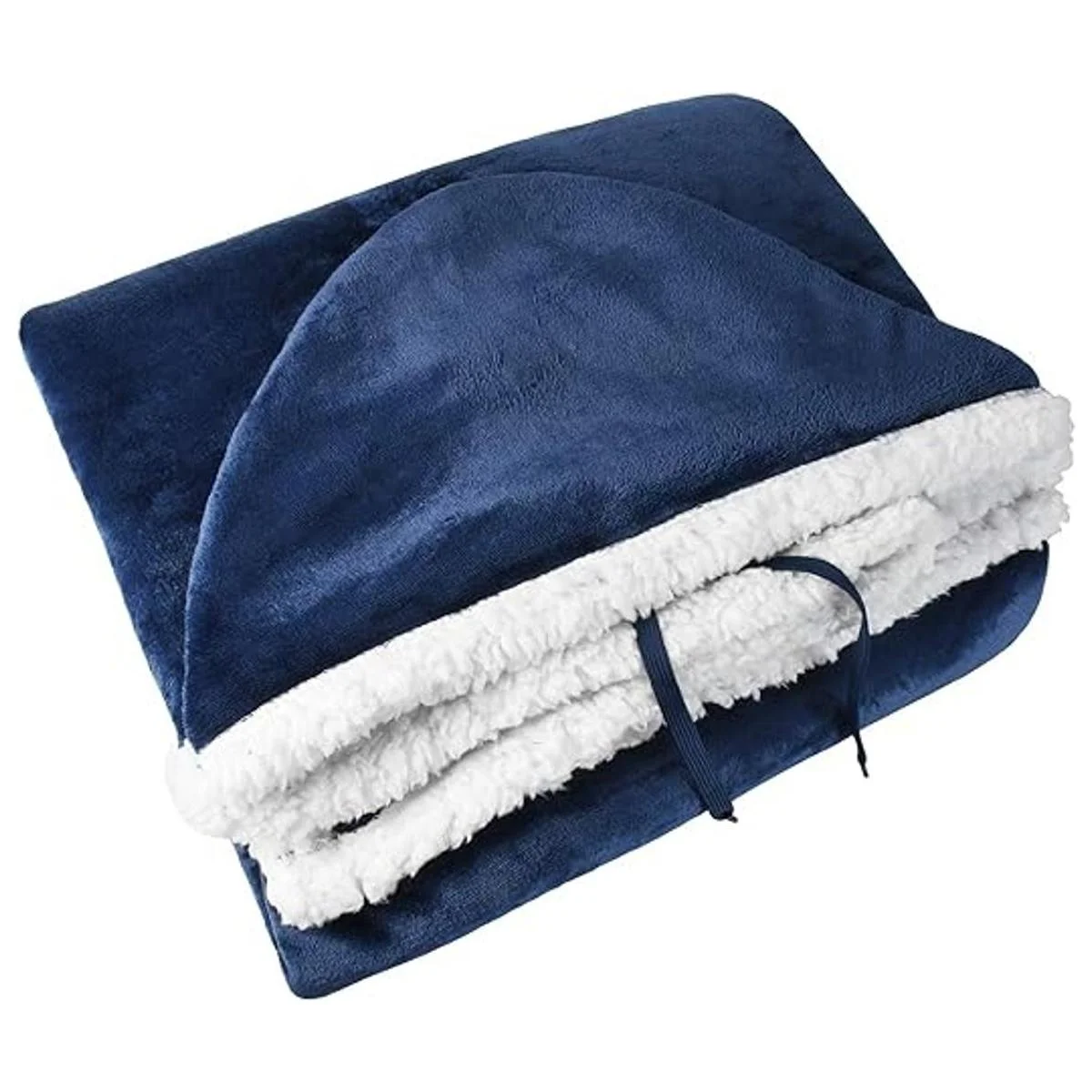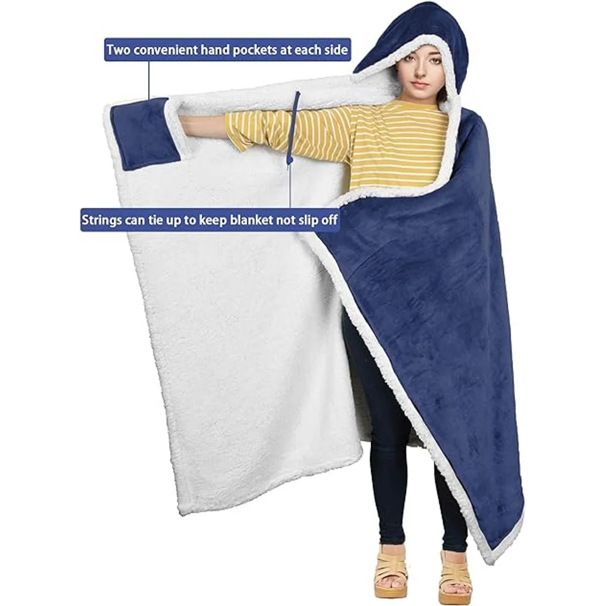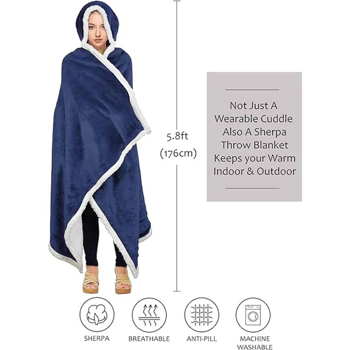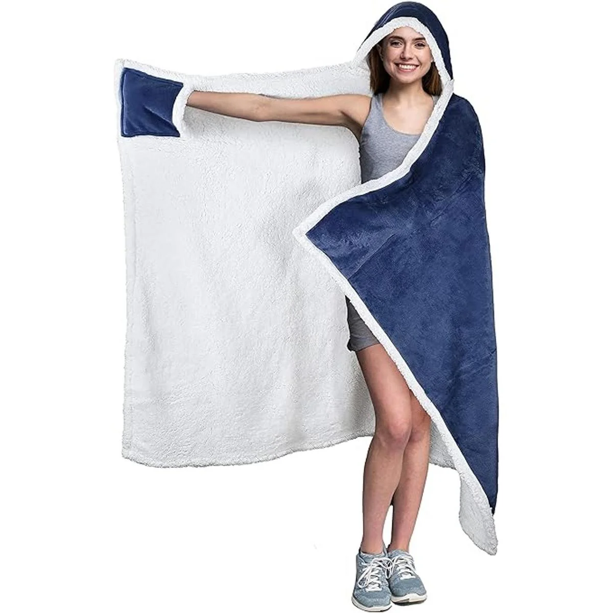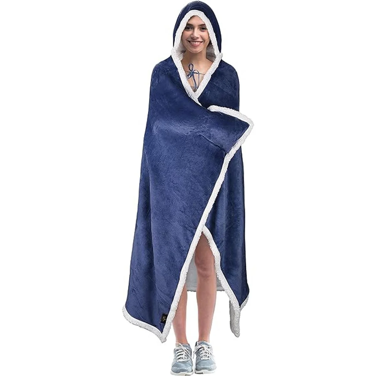 Catalonia classic Manta con capucha, cálida y acogedora manta de poncho de forro polar, ultra suave, afelpada, cómoda, talla única, azul marino