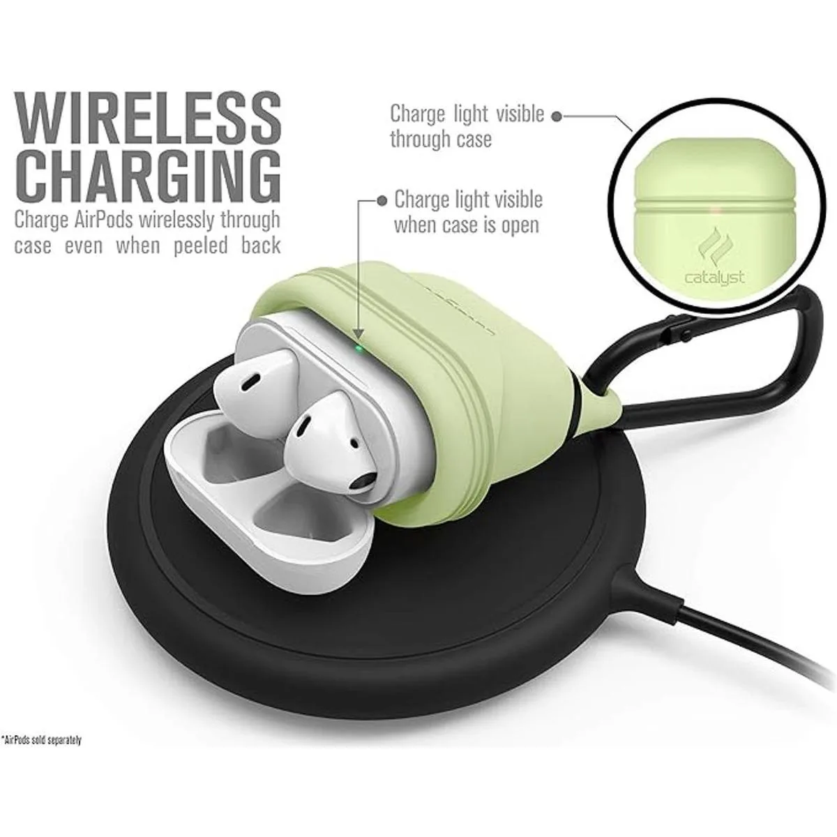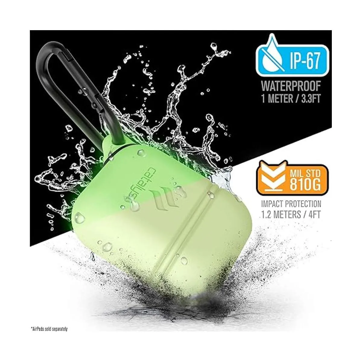 Catalyst Funda impermeable para Airpods con sellado de silicona protectora, compatible con Apple Airpods 2 de carga inalámbrica, mosquetón, a prueba de golpes. Accesorios de Apple que brillan en la oscuridad
