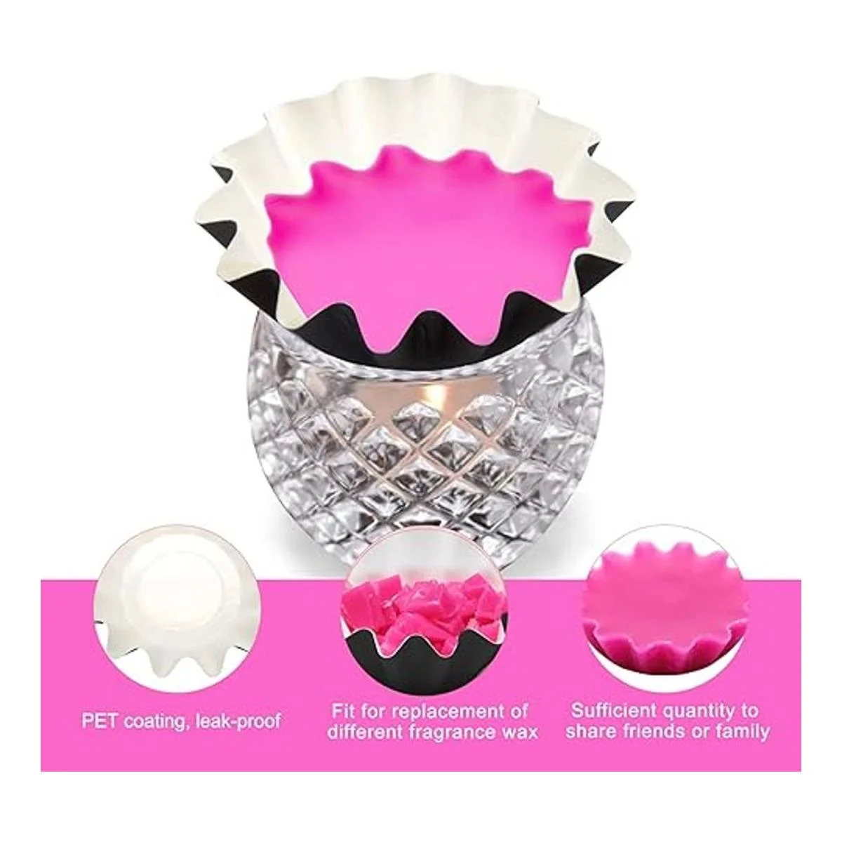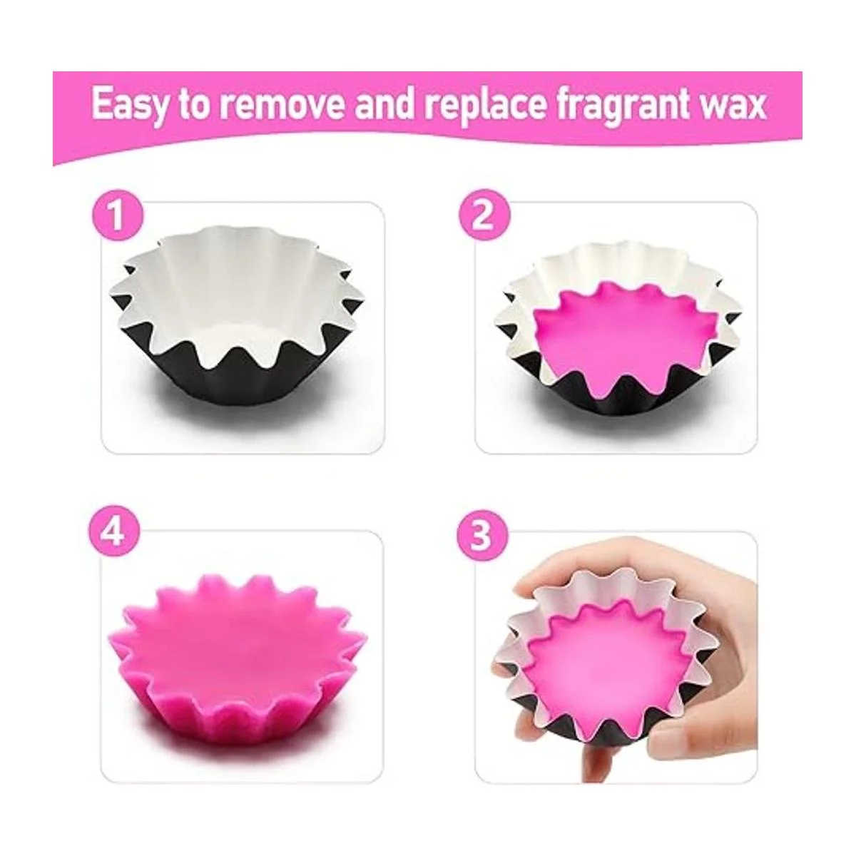 Reutilizable y a prueba de fugas: diseño de forro interior de la bandeja de cera con un revestimiento protector, sin fugas en el quemador de cera o derretidor, se puede reutilizar para reemplazar varios bloques de cera, pasteles de cera y otras fragancias de cera diferentes, adecuado para la mayoría de ceras perfumadas para derretirse mejor y liberar la fragancia.