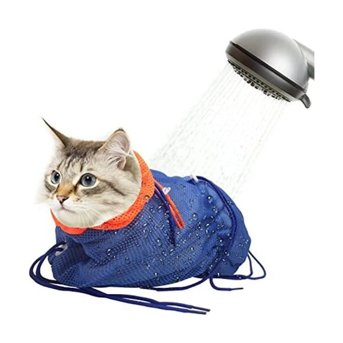 Catcan Bolsa de baño para gatos, bolsa de ducha de malla transpirable para gatos, bolsa de aseo ajustable para gatos para recortar uñas, bolsa de lavado suave de poliéster para gatos
