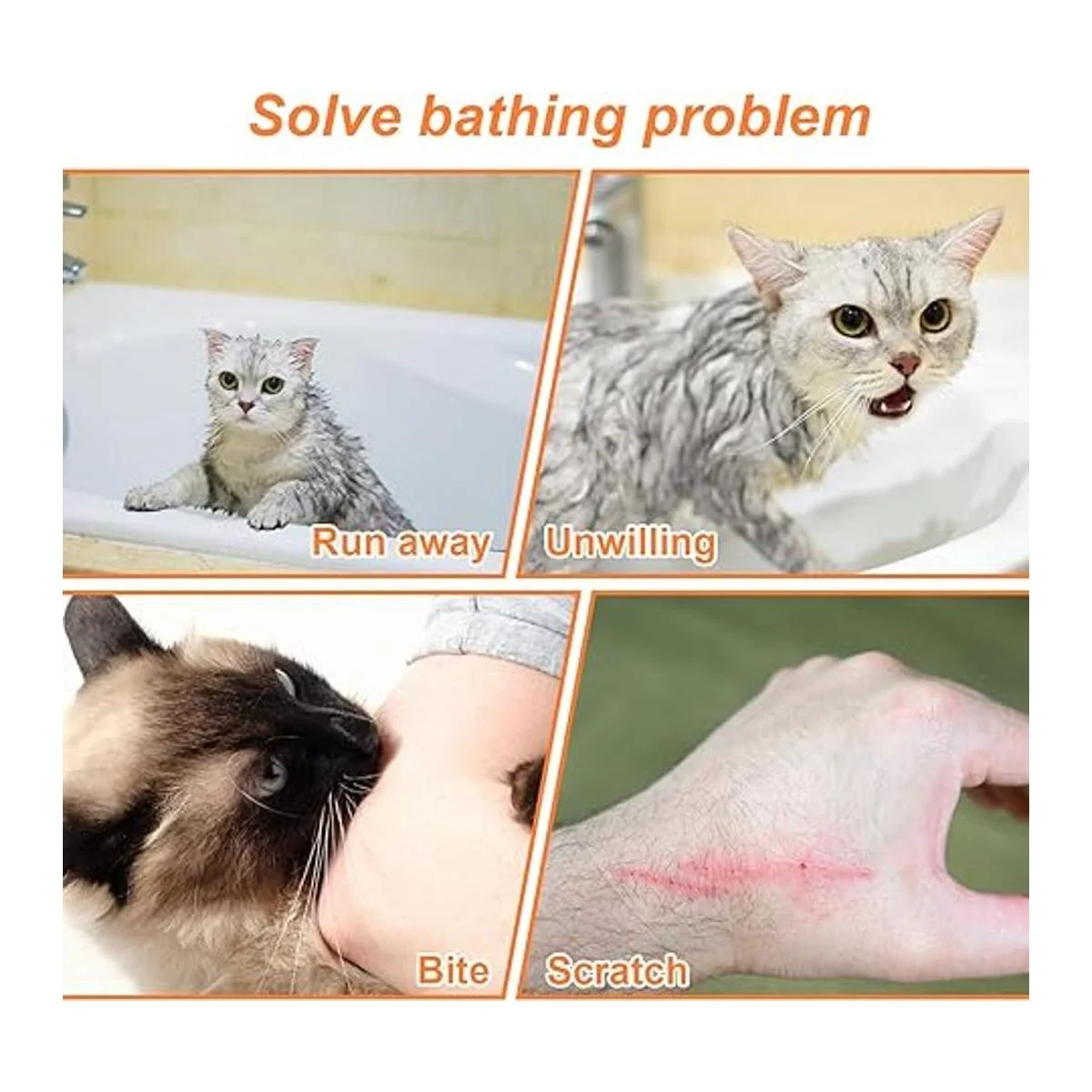 Múltiples funciones: los gatos tienen miedo al agua, por lo que tienen una resistencia feroz al bañarse, la bolsa de lavado para gatos es muy adecuada para ayudar a bañarse a gatos, recortar uñas, limpiar orejas y dientes, dar inyecciones y medicamentos, gotas para los ojos, fácil de cuidar para tu gato.