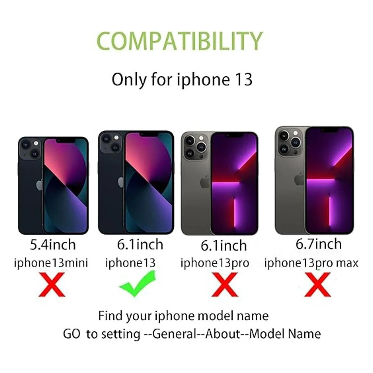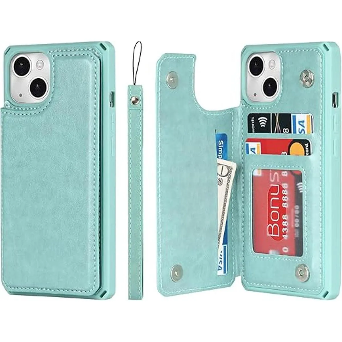 Cavor Funda para iPhone 13, funda para tarjetero 3 ranuras para tarjetas con cordón Funda de piel sintética con tapa a prueba de golpes para iPhone 13, color verde
