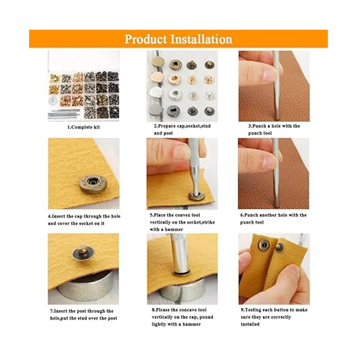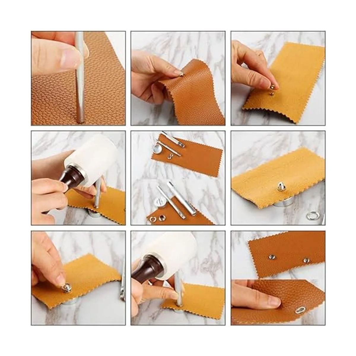 Juego valioso: el paquete incluye alrededor de 200 remaches de cuero, 140 ojales y ojales, 40 botones duraderos, 20 tornillos de juego, 7 herramientas de fijación, satisface tus demandas de cuero de bricolaje, manualidades de lona